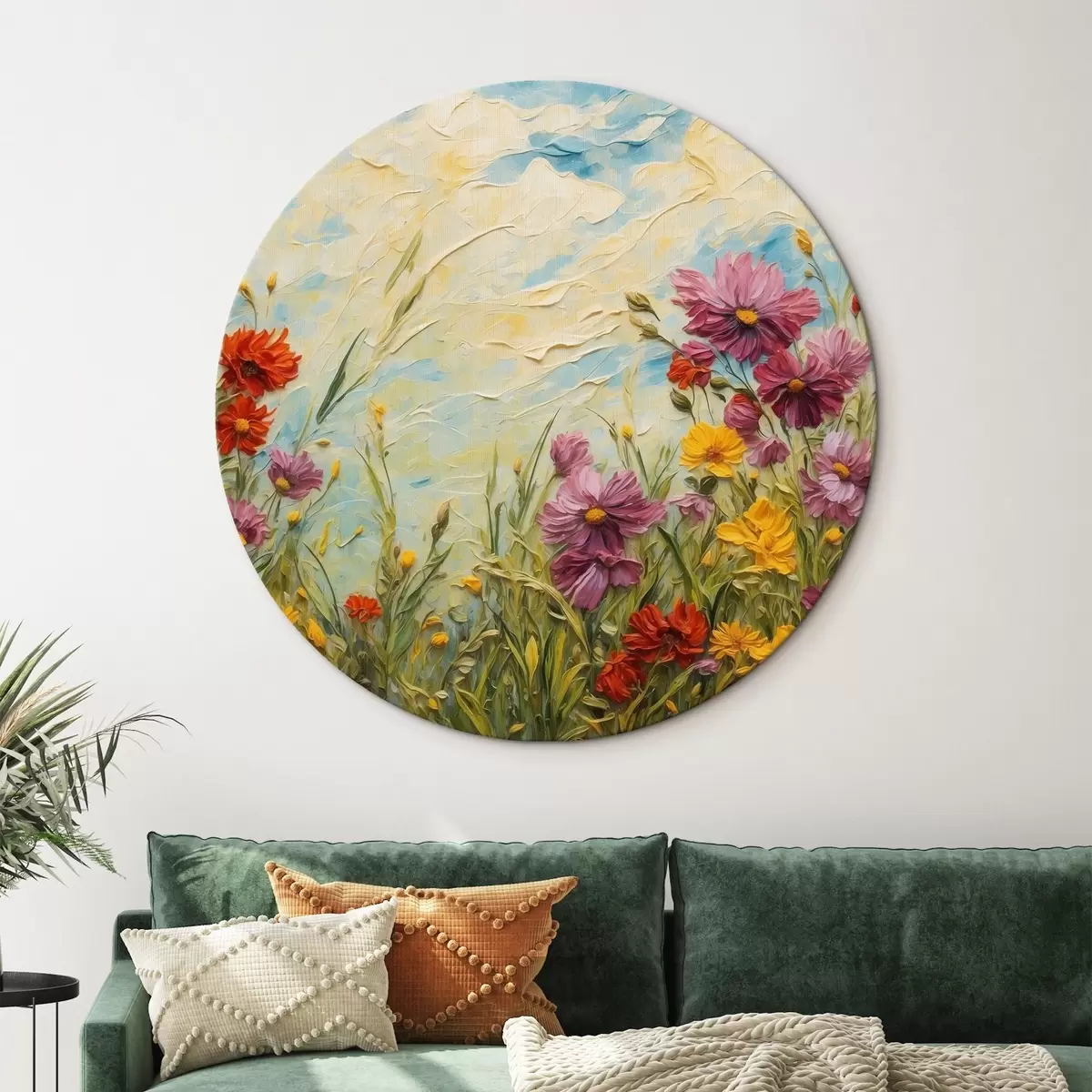 Runde Wandbilder Blumenfeld im Stil der Ölmalerei r43102