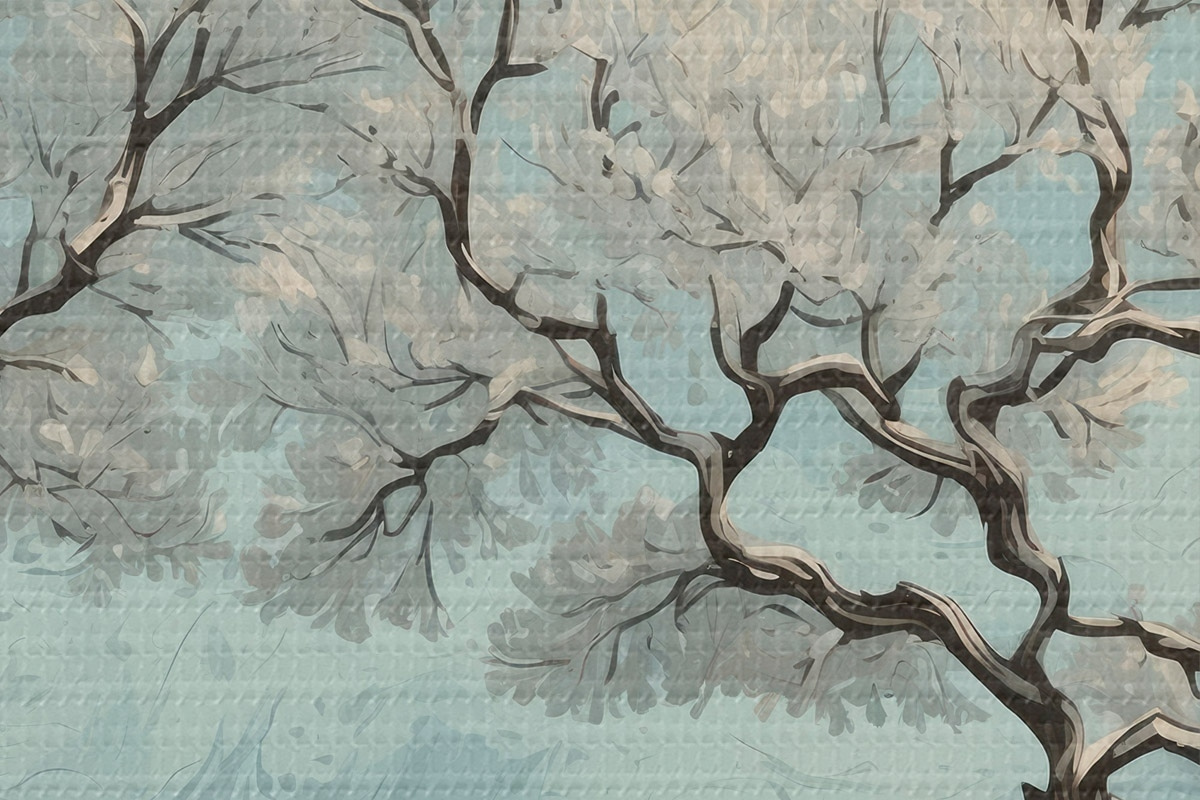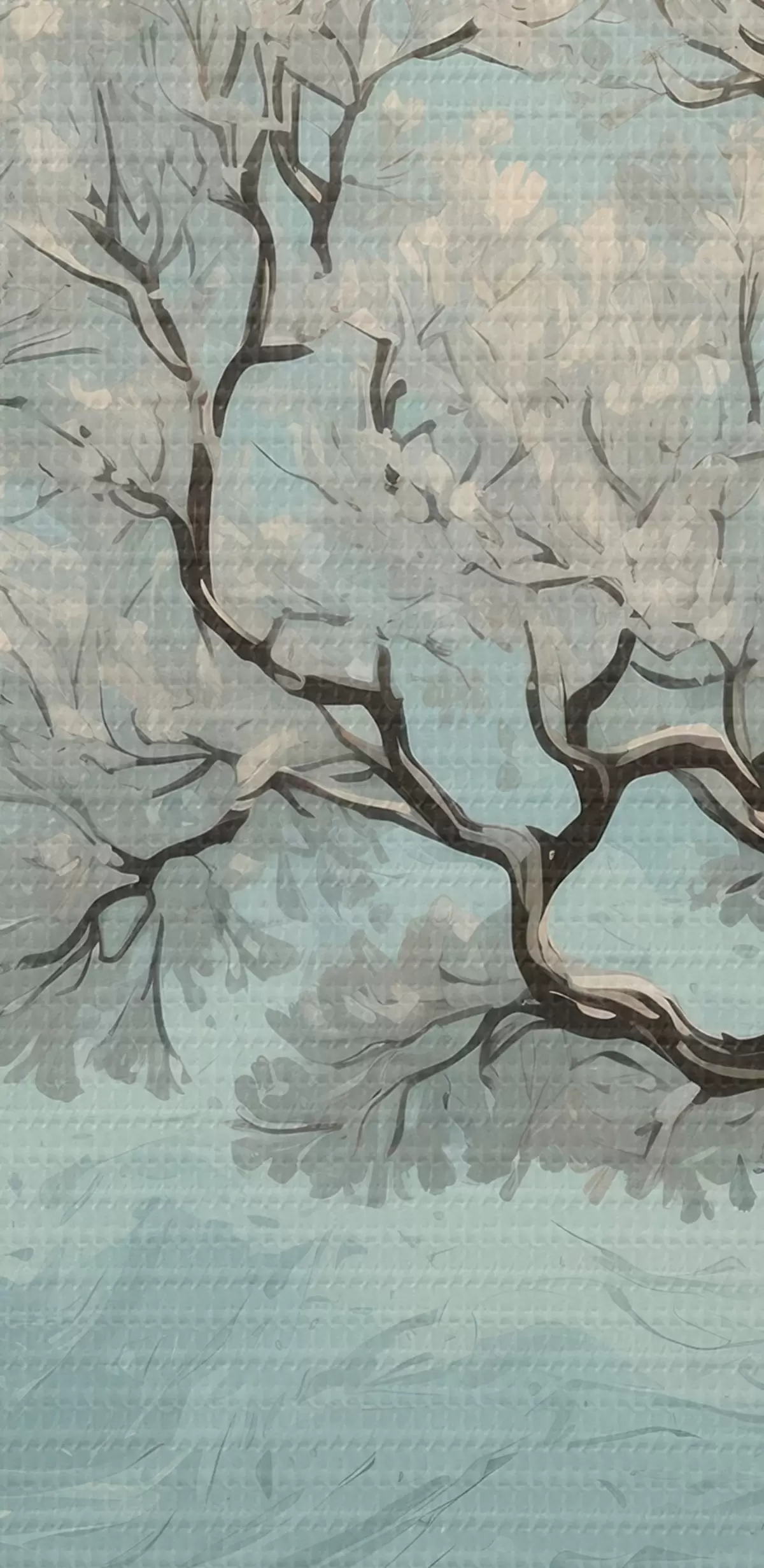 Runde Wandbilder Weiße Bäume in Acrylmalerei Stil r43112