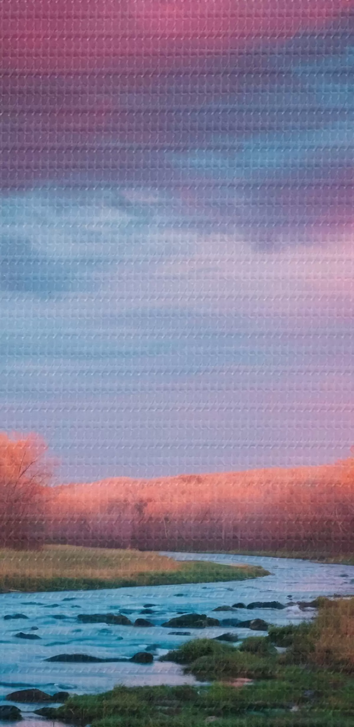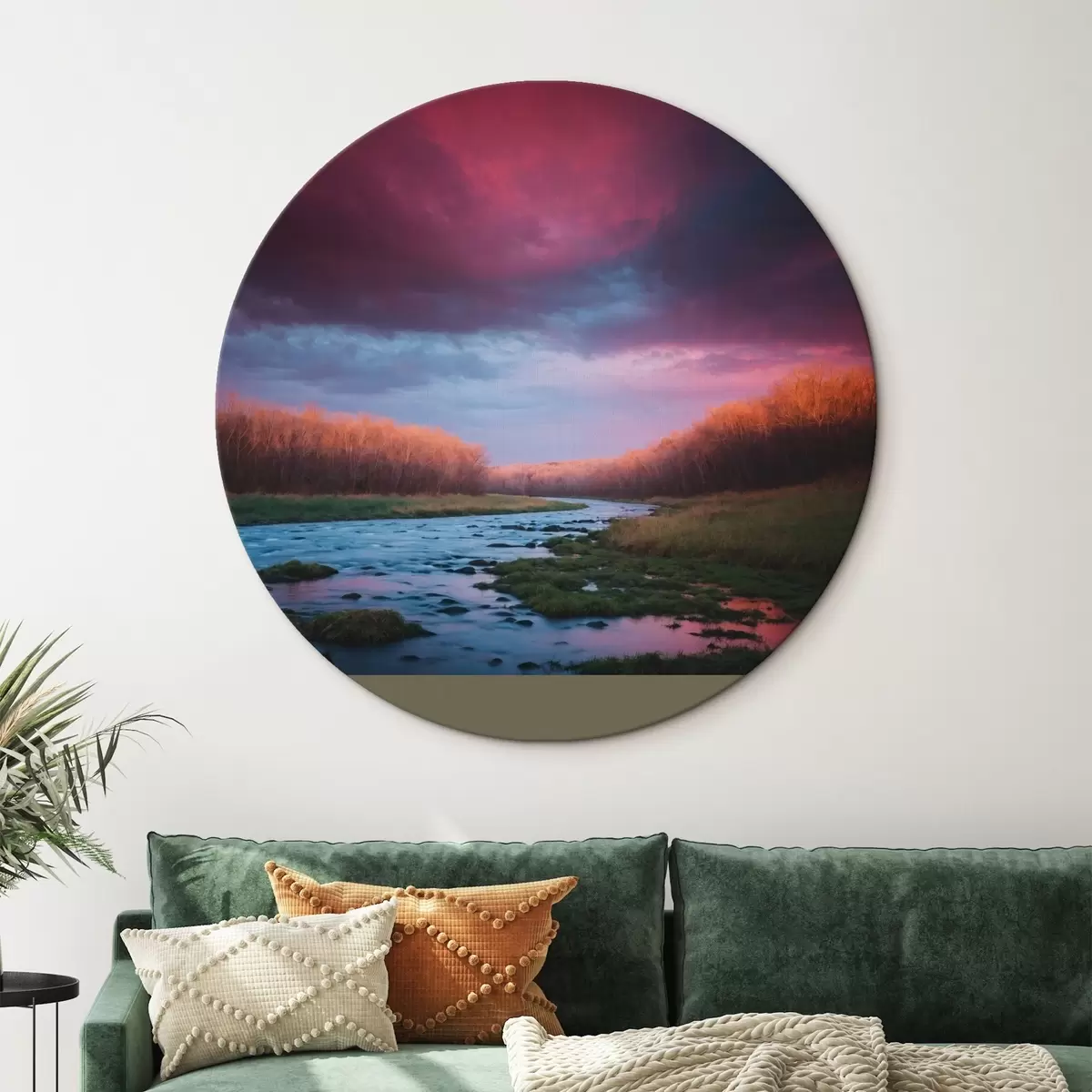 Runde Wandbilder Stream im Feld auf dem Hintergrund der lila Himmel Nr r43120