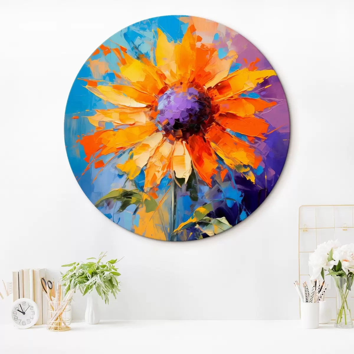 Runde Wandbilder Eine leuchtende Sonnenblume im abstrakten Malstil r43133