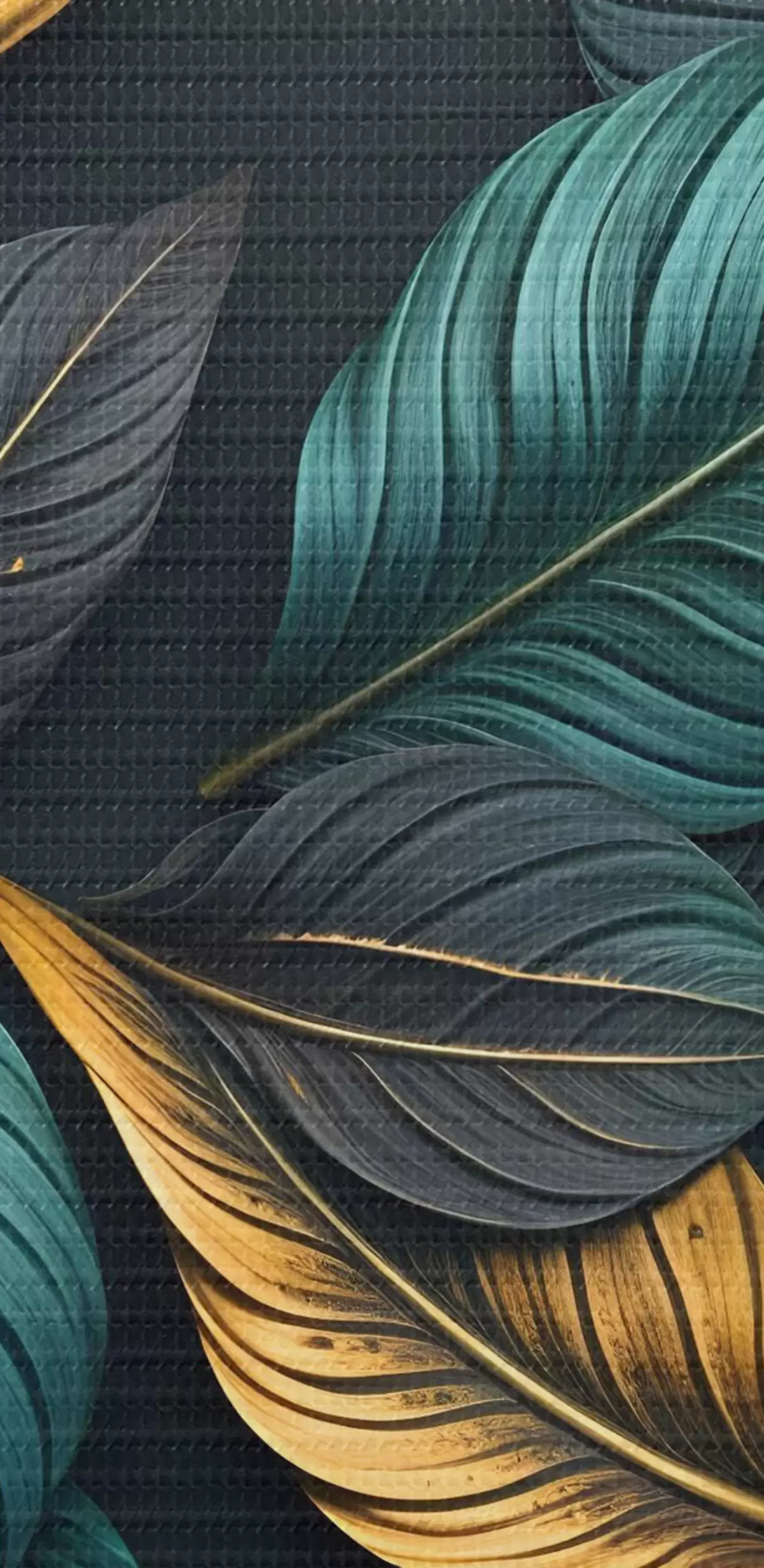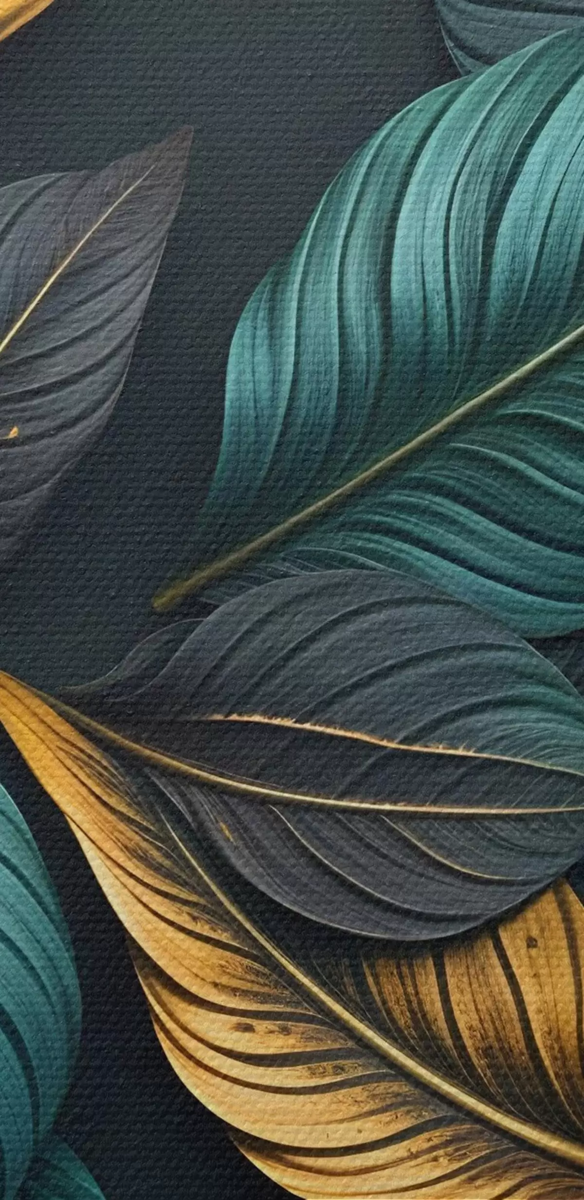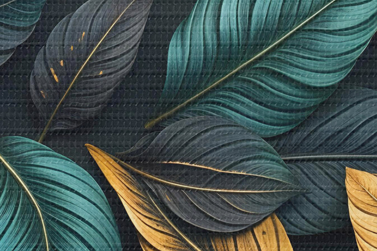 Runde Wandbilder Dunkelgrüne, gelbe und schwarze Blätter mit dunklen Adern, auf dunklem Hintergrund, elegante tropische Stimmung r43164