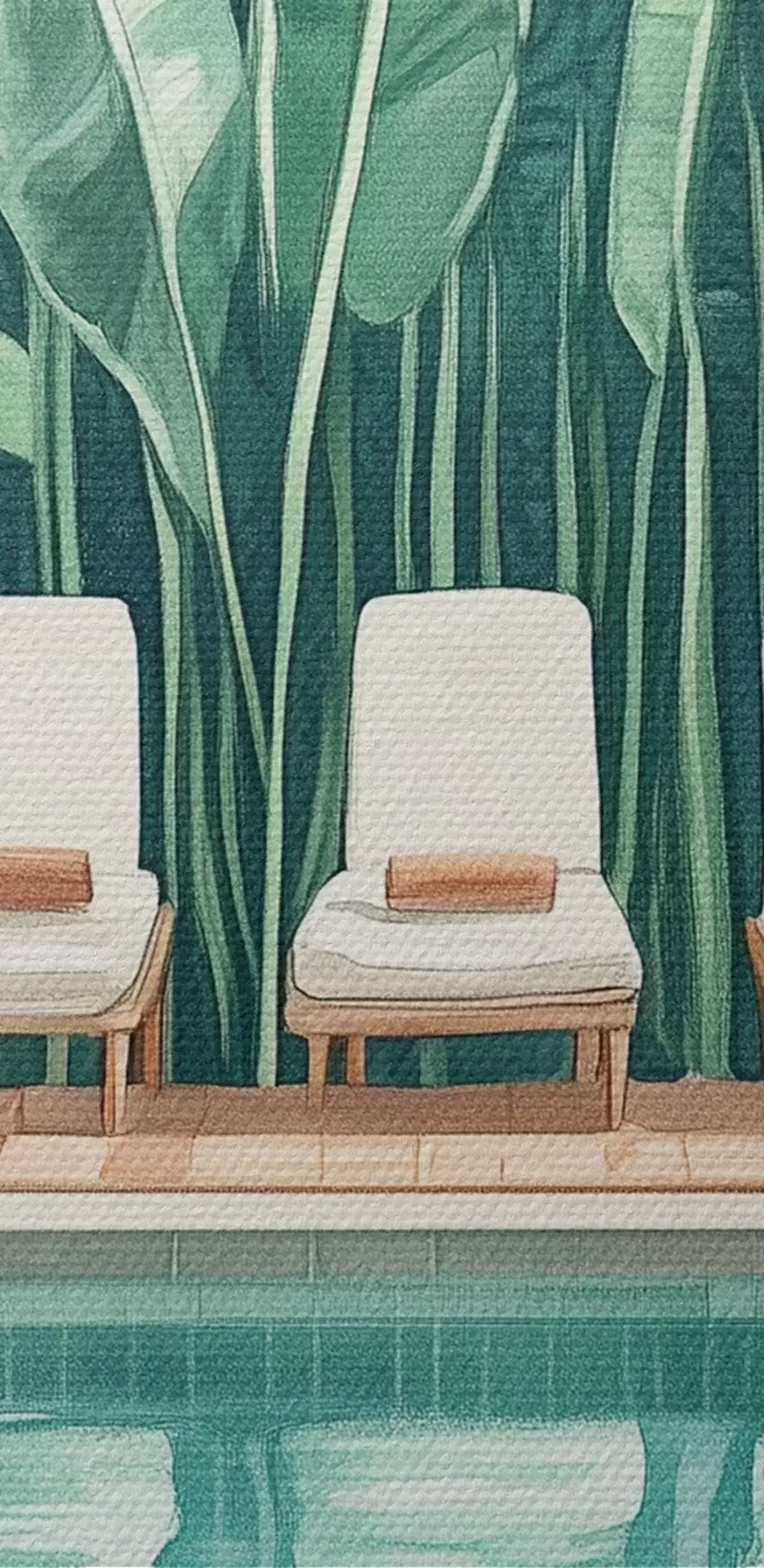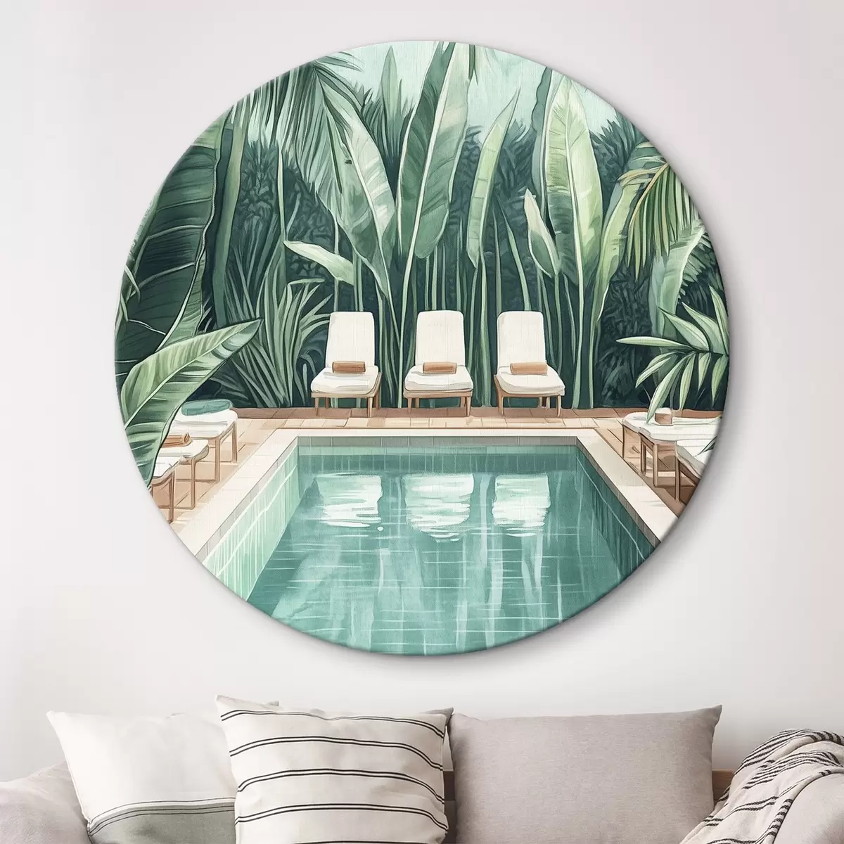 Runde Wandbilder Ästhetischer Sommerpool im tropischen Garten, Aquarellstil Nr r43192