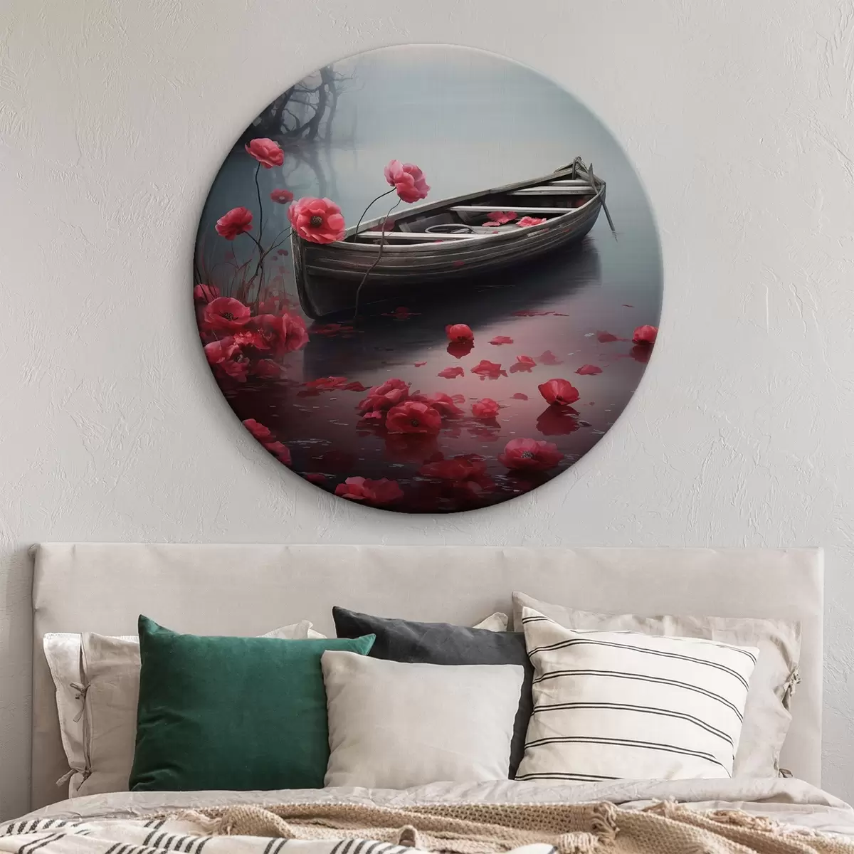 Runde Wandbilder Boot und Mohnblumen auf dem See Nr r43203