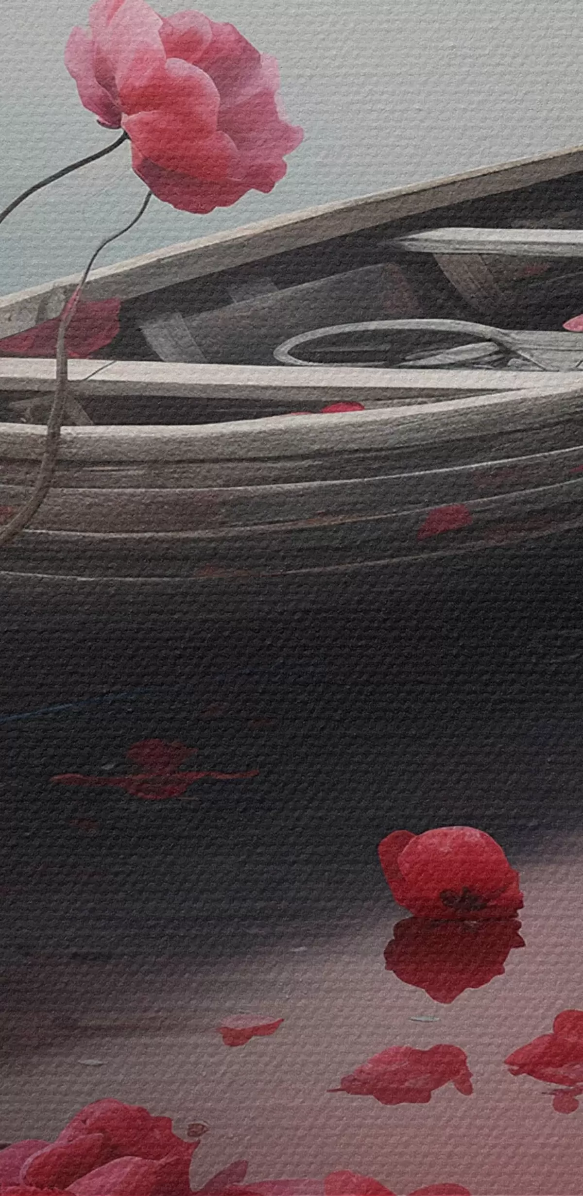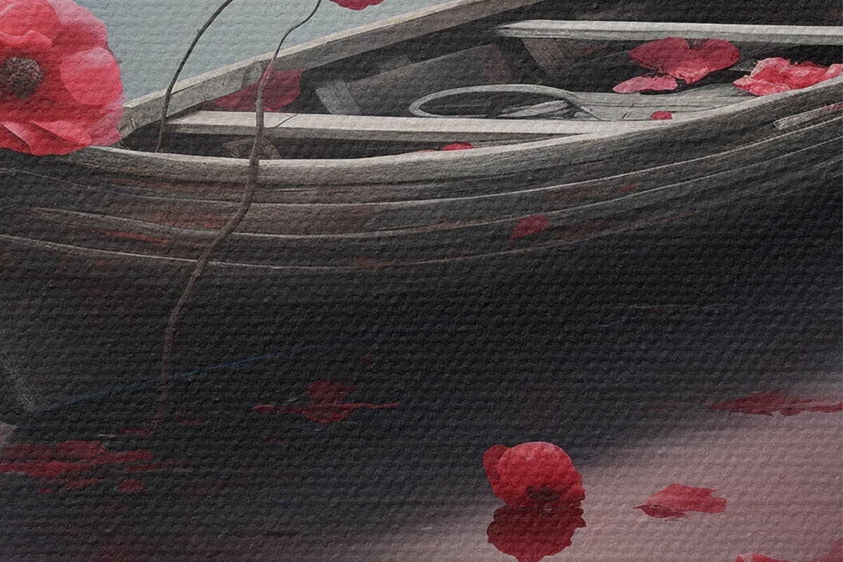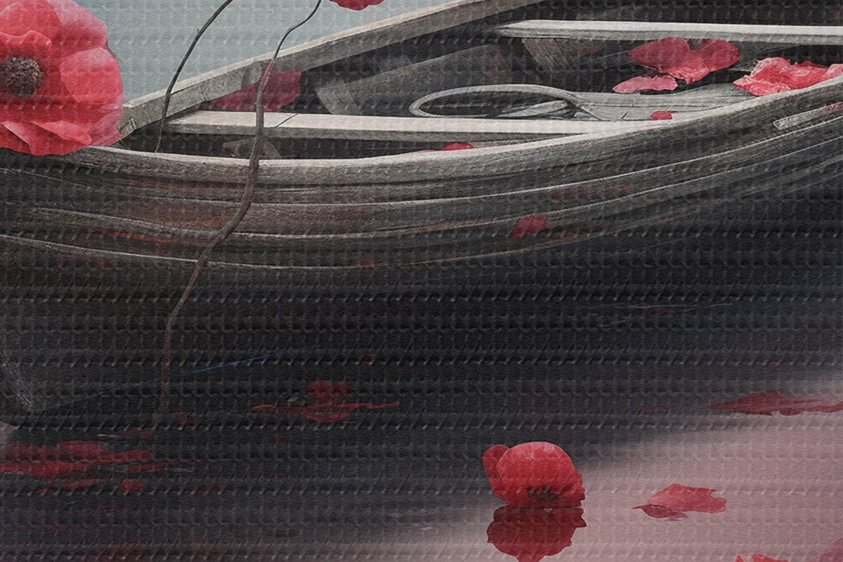 Runde Wandbilder Boot und Mohnblumen auf dem See r43203