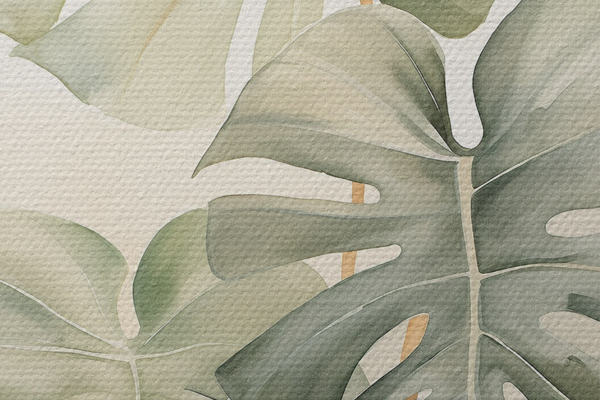 Runde Wandbilder Monstera-Blätter in Aquarelltechnik r43210