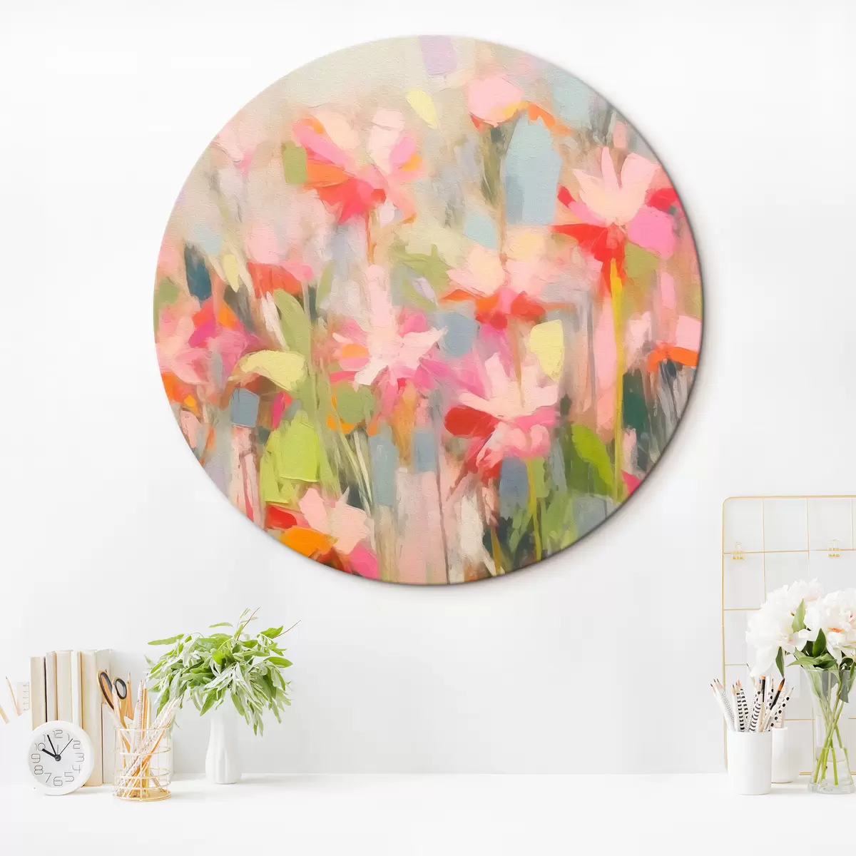 Runde Wandbilder Rosa Blumen Abstraktion r43243
