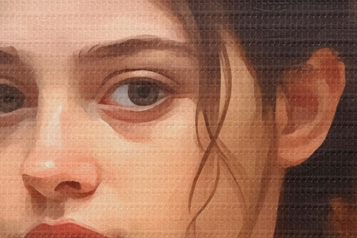 Das feine Fadengeflecht auf dieser Leinwand ähnelt der Oberfläche von professionellen Künstlerleinwänden.
