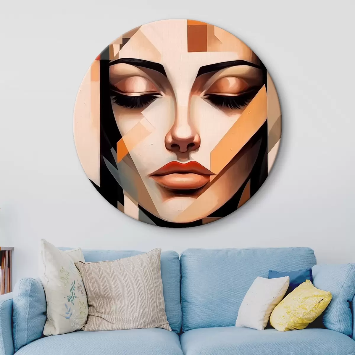 Runde Wandbilder Geometrisches Porträt in warmen Farben r43281