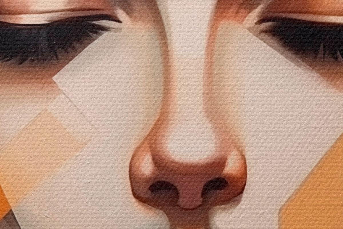Um die Leinwand auf Keilrahmen zu spannen, ohne das Bild zu beschädigen, verwenden wir ein gespiegeltes Bild.
