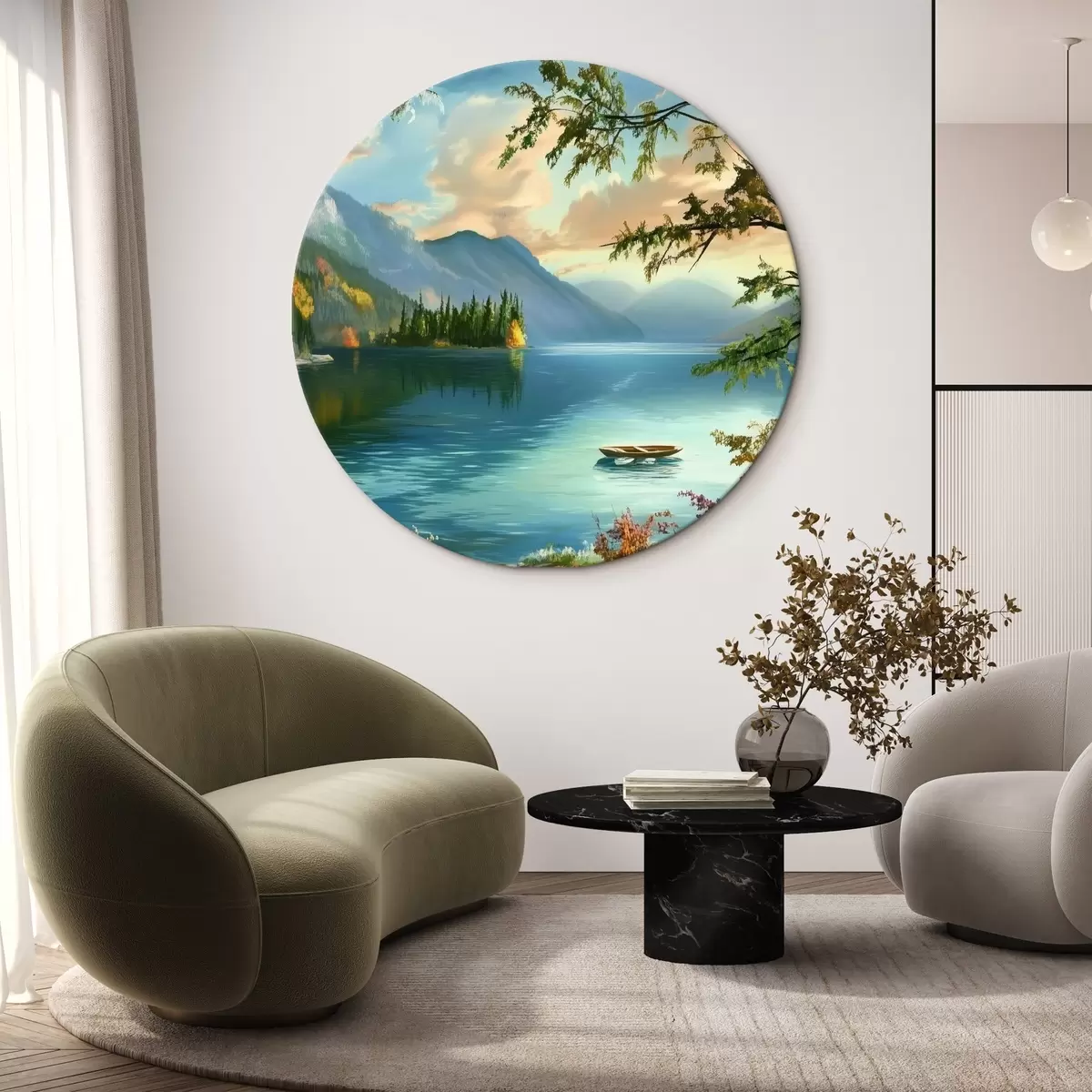 Runde Wandbilder Landschaft eines Sees in den Bergen r43286