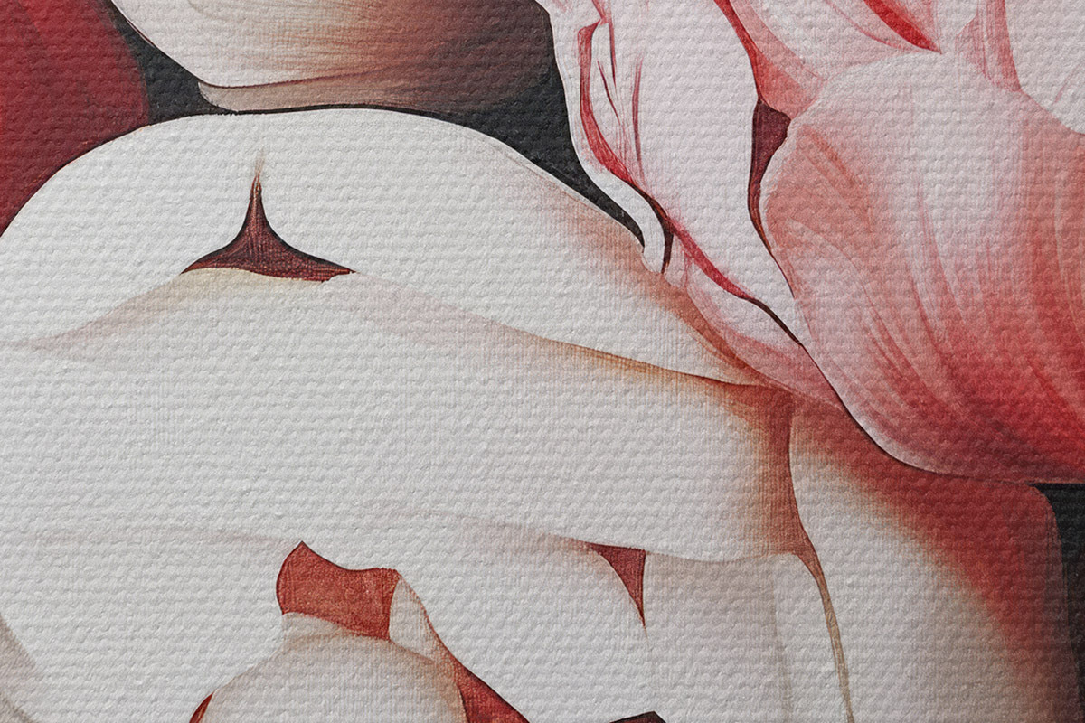 Drei Materialtypen stehen zur Verfügung: Economic Canvas - ein dichtes und haltbares Material für den Digitaldruck, identisch mit Malerleinwand, wasserfeste Oberfläche, realistische Wiedergabe von Details, mittelkörniges Material. Premium Canvas - die Textur ähnelt der einer Malerleinwand (verwobene kleine Fäden). Weiche, detaillierte Wiedergabe des Bildes auf einer matten Oberfläche. Eco-Premium - hochwertiges Gewebe aus 100% Baumwolle. Dank der natürlichen Baumwollfasern ist das Material langlebig und verschleißfest. Hervorragende Farbwiedergabe und Detailtreue.
