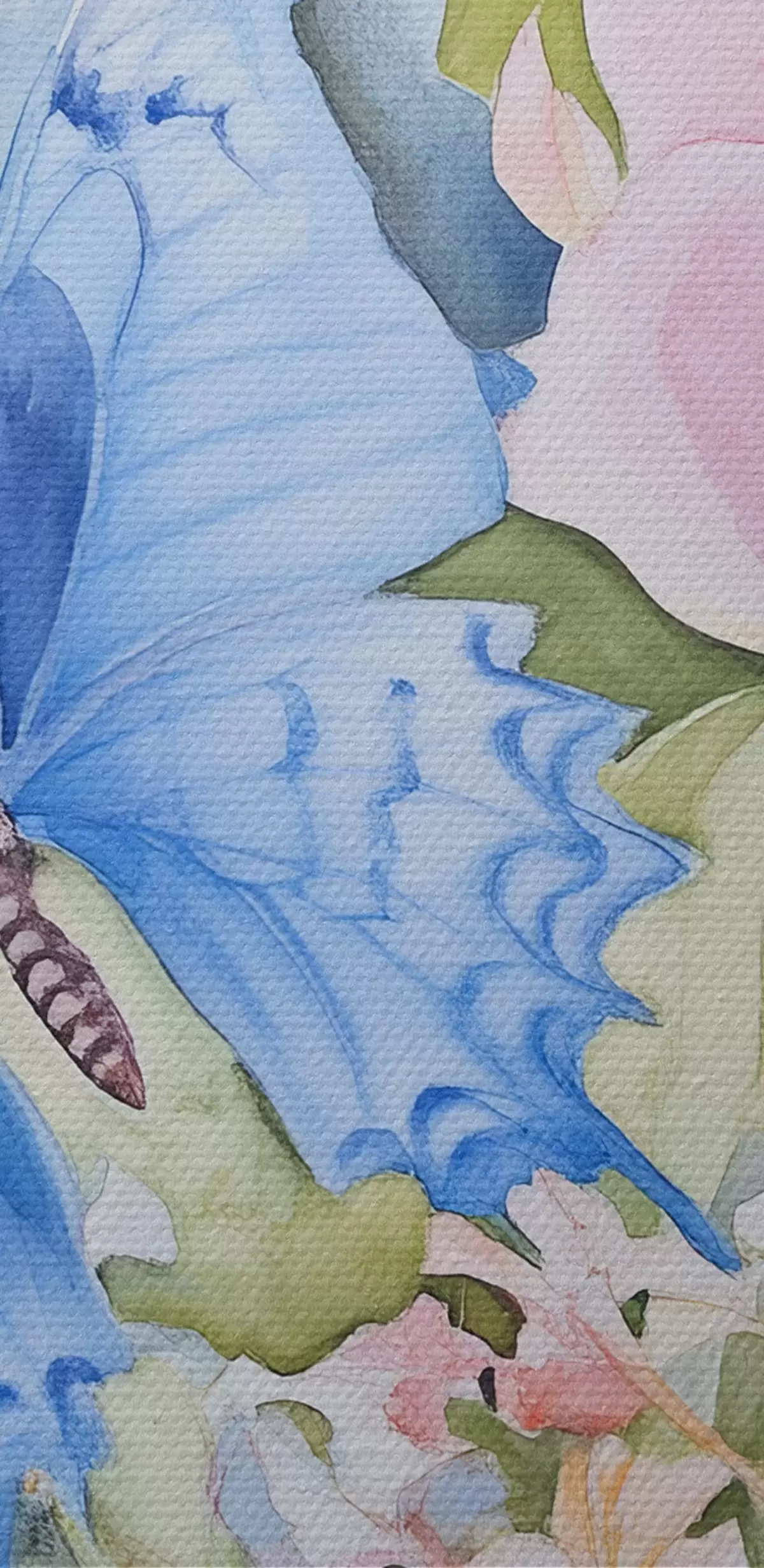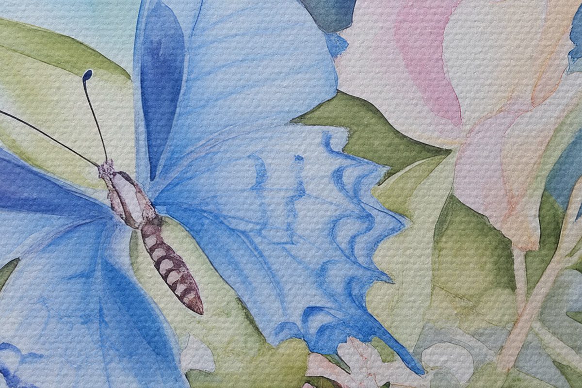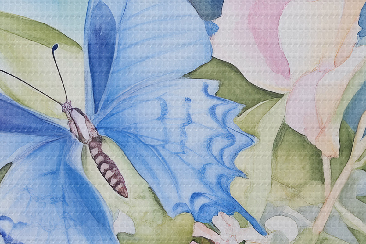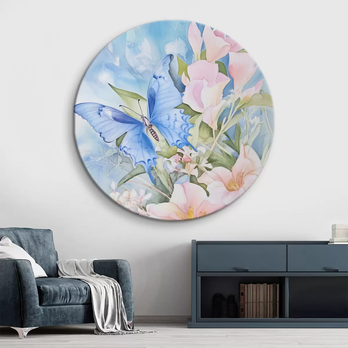 Runde Wandbilder Blauer Schmetterling und rosa Blumen Nr r43296