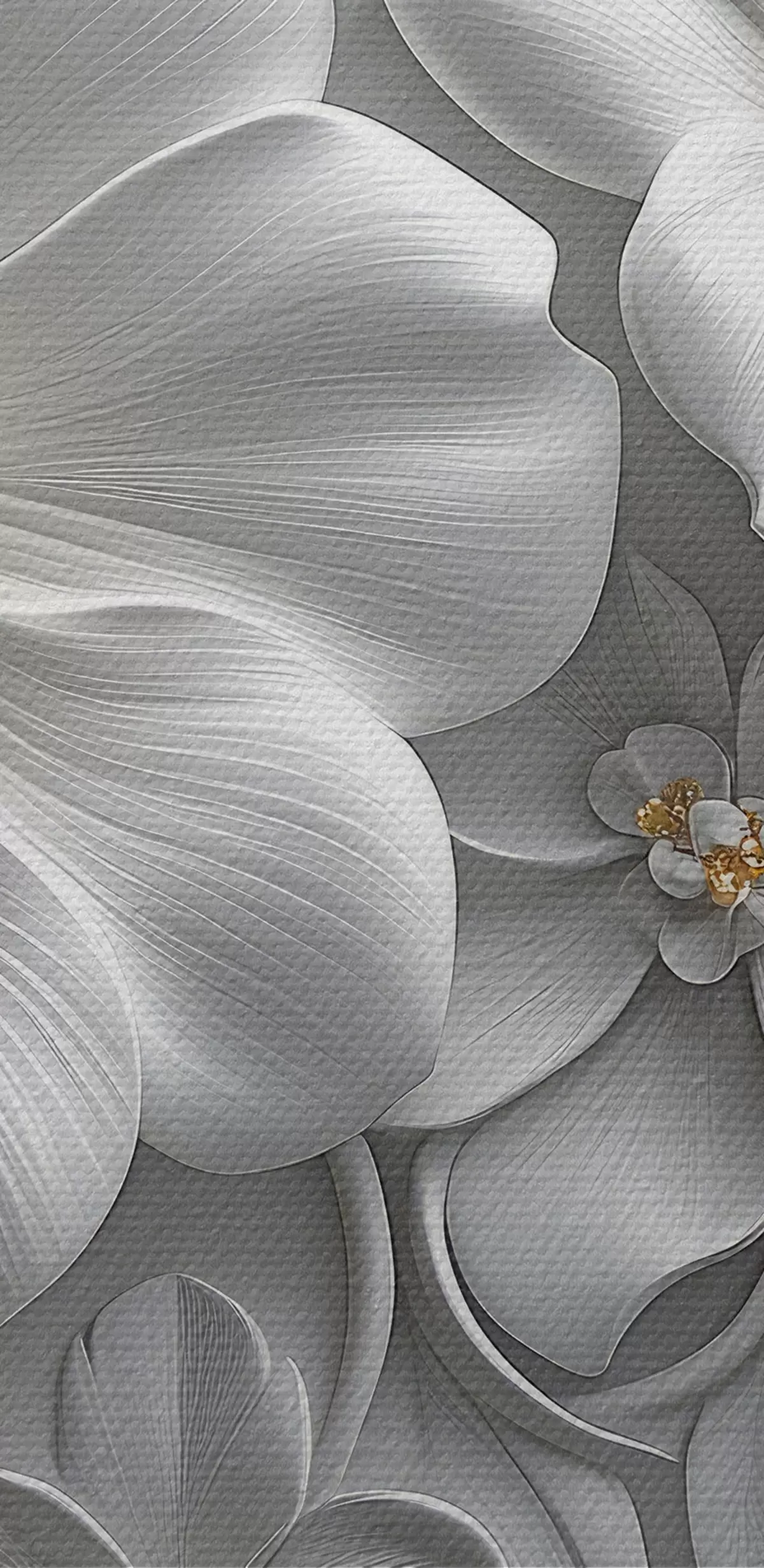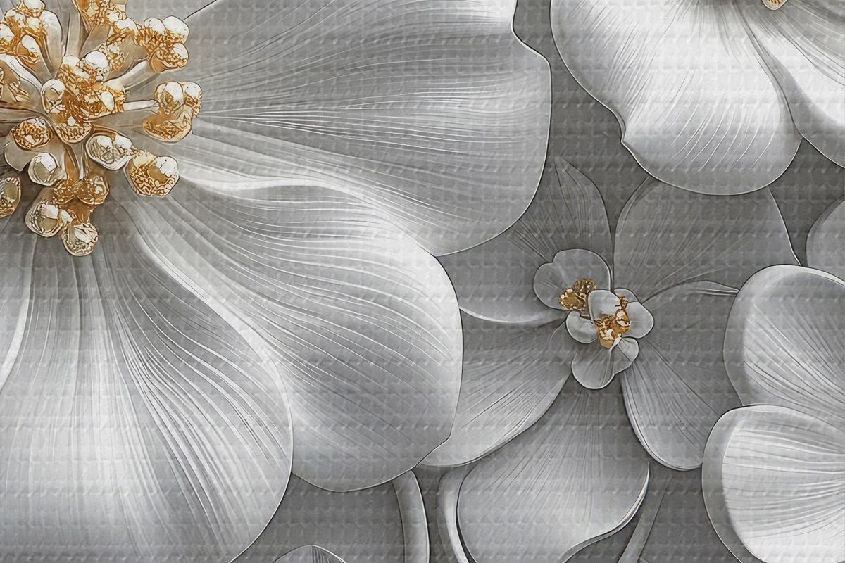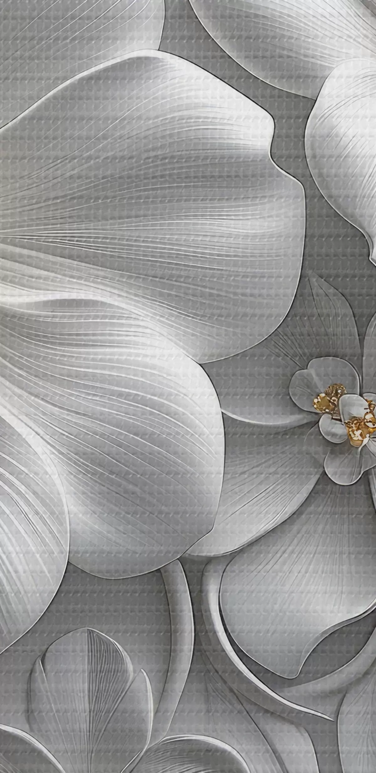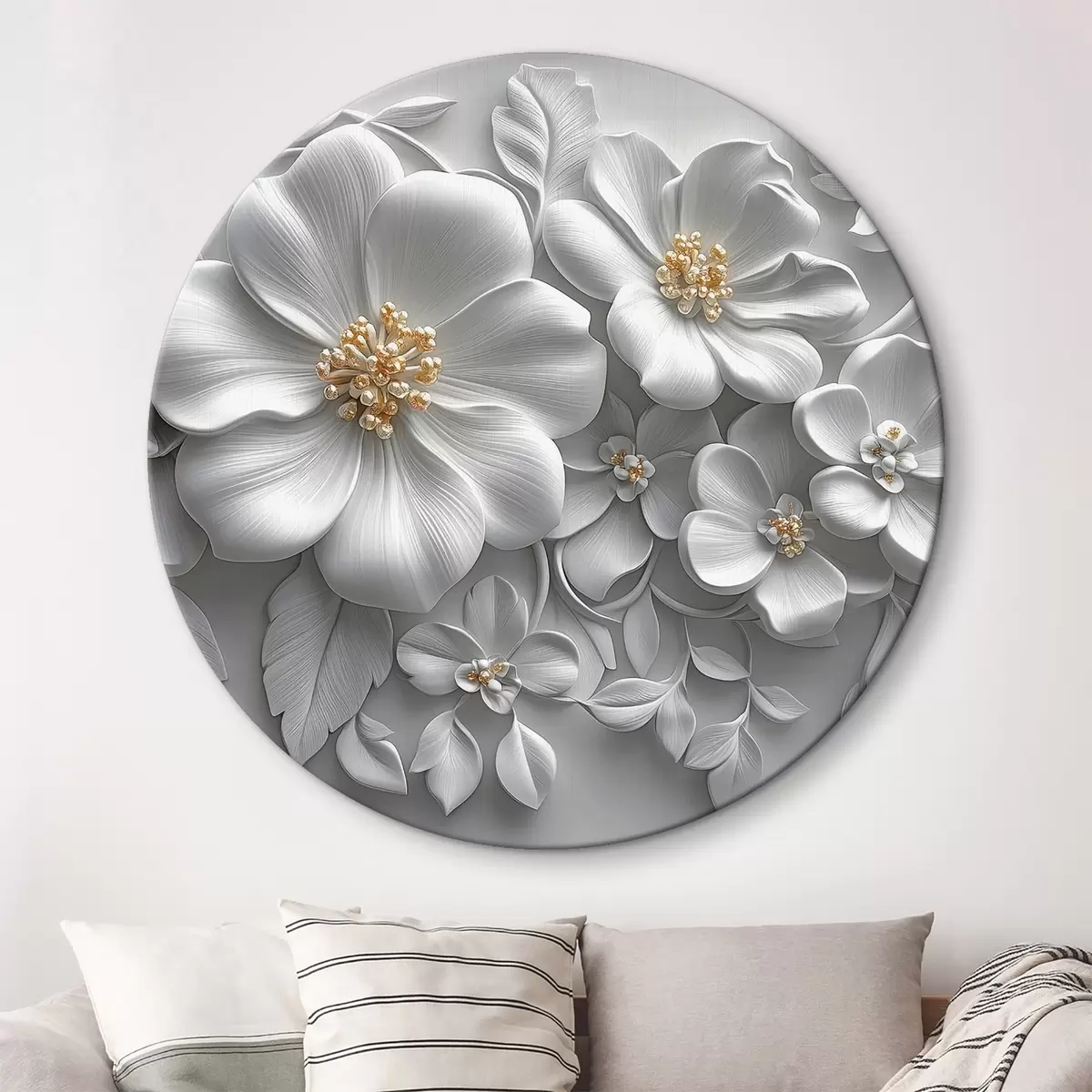 Runde Wandbilder 3d graue Blumen mit einem gelben Akzent Nr r43310