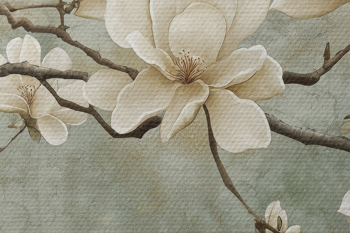 Runde Wandbilder Magnolienzweig auf einem pastellfarbenen Grunge-Hintergrund r43322