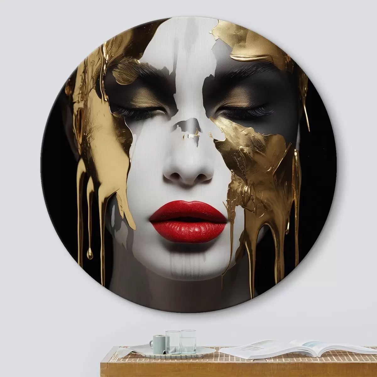 Runde Wandbilder Menschen, Mädchen mit roten Lippen Nr r43336