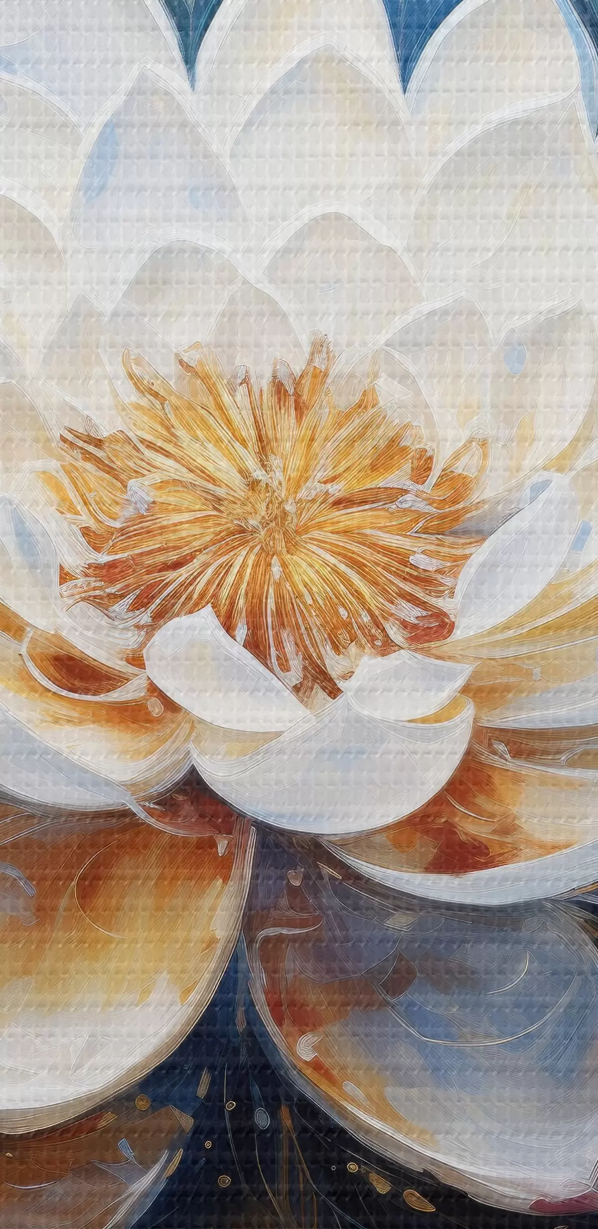 Runde Wandbilder Weißer Lotus auf blauem Hintergrund im Malstil r43371