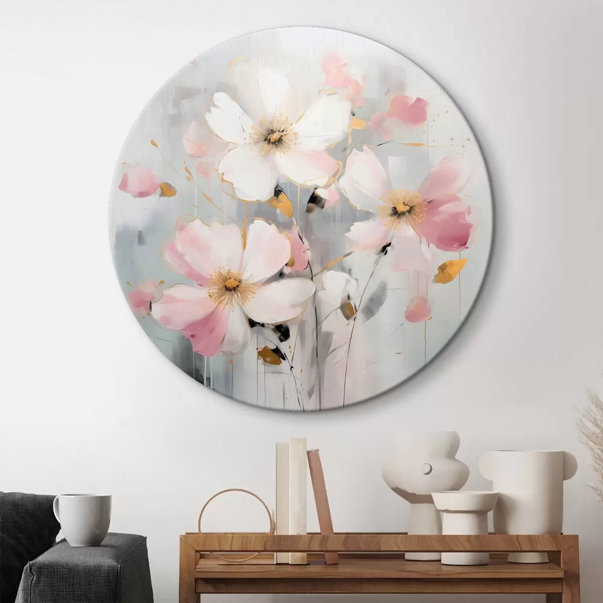 Runde Wandbilder Blumen in sanften Tönen mit großen Pinselstrichen im Malstil r43380