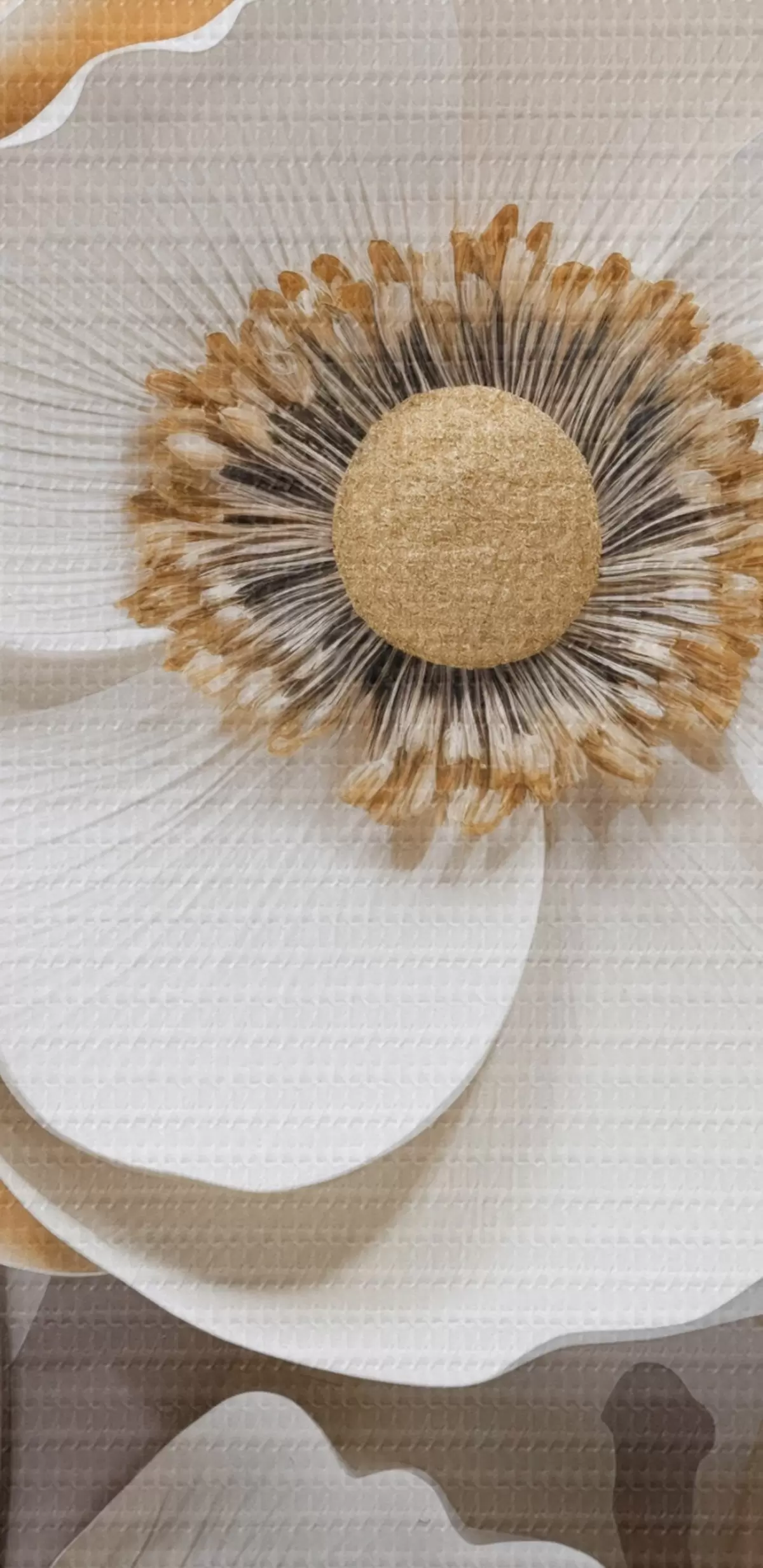 Runde Wandbilder Weiße Anemonenblüten mit gelber Mitte, mit minimalistischem Hintergrund, der ein zartes Blumenmuster ergibt Nr r43400
