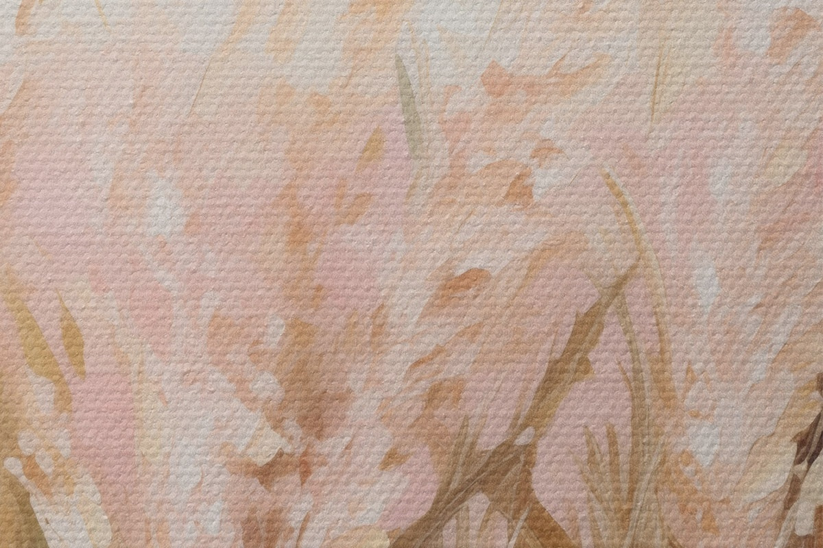 Runde Wandbilder Pampasgrasfeld mit rosa und braunen Tönen, weiche Pinselstriche, abstrakte Ölmalerei Kunstimitation r43403