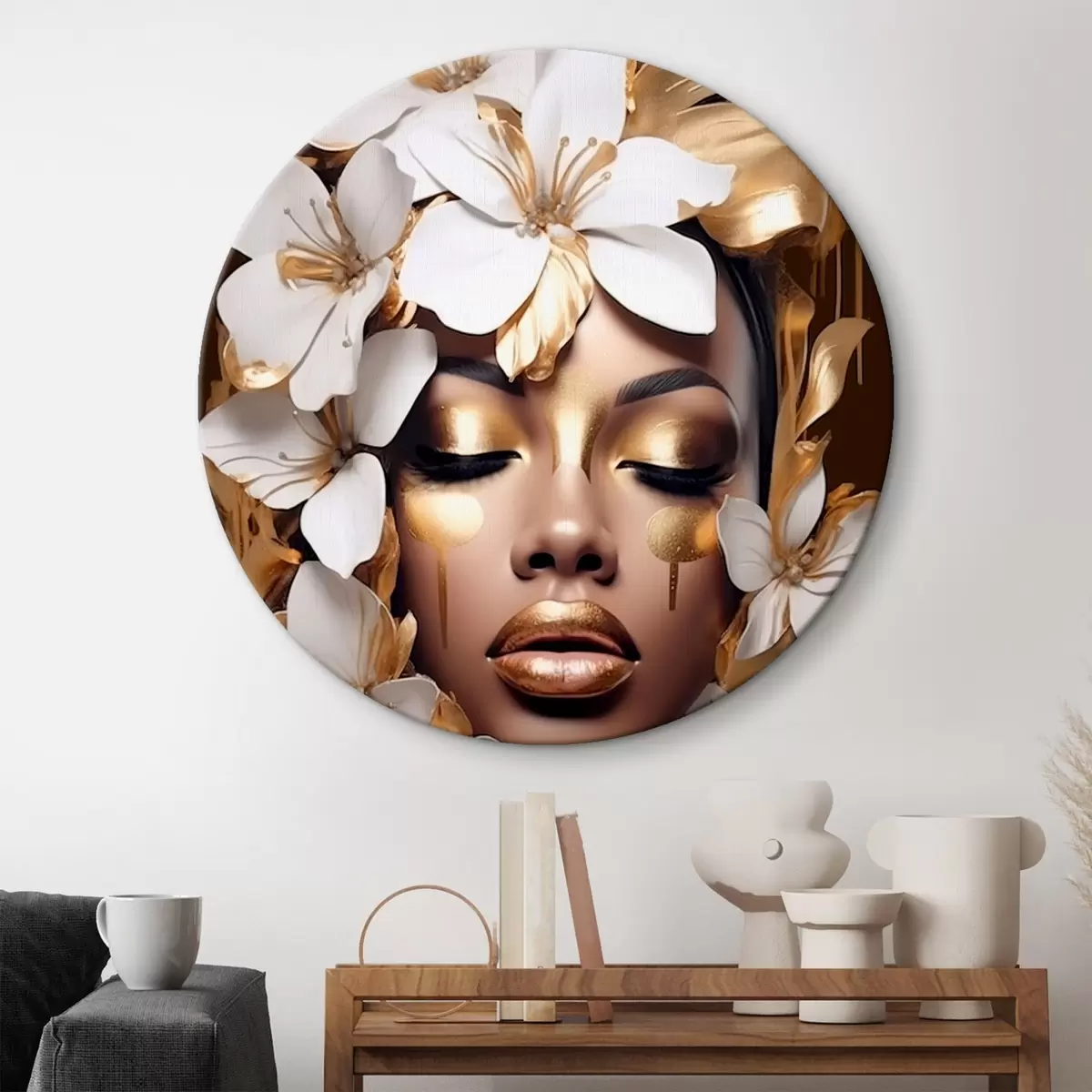Runde Wandbilder Weibliches Porträt mit floralen Elementen r43417