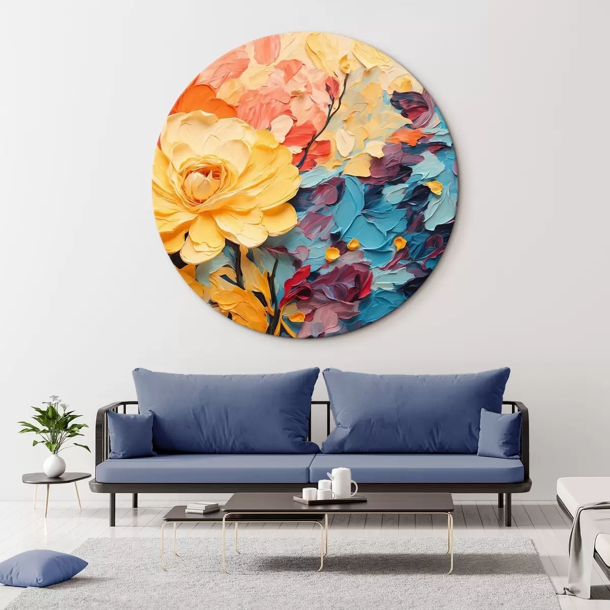 Runde Wandbilder Blumen auf abstraktem Hintergrund im Stil der Ölmalerei r43442