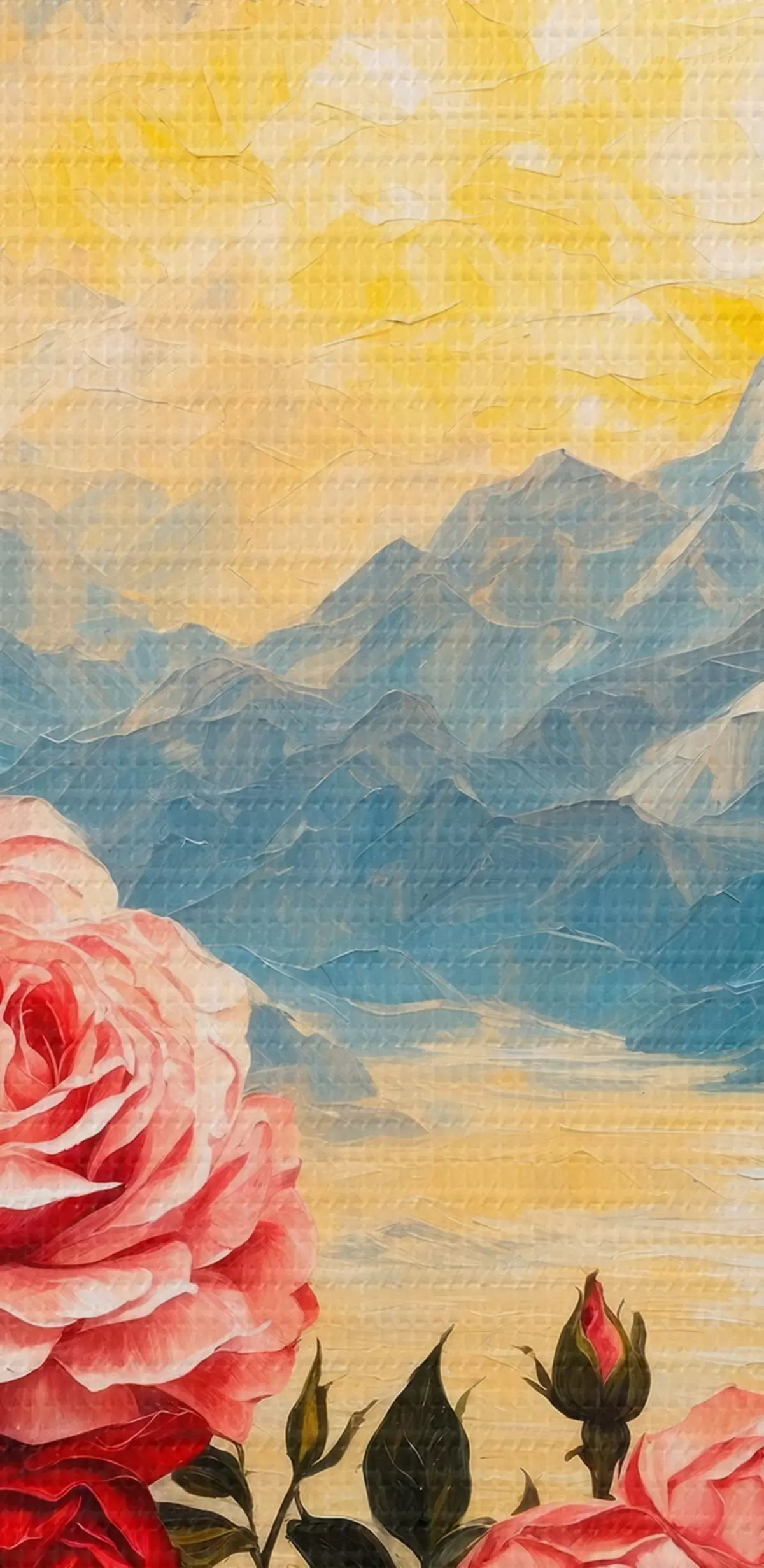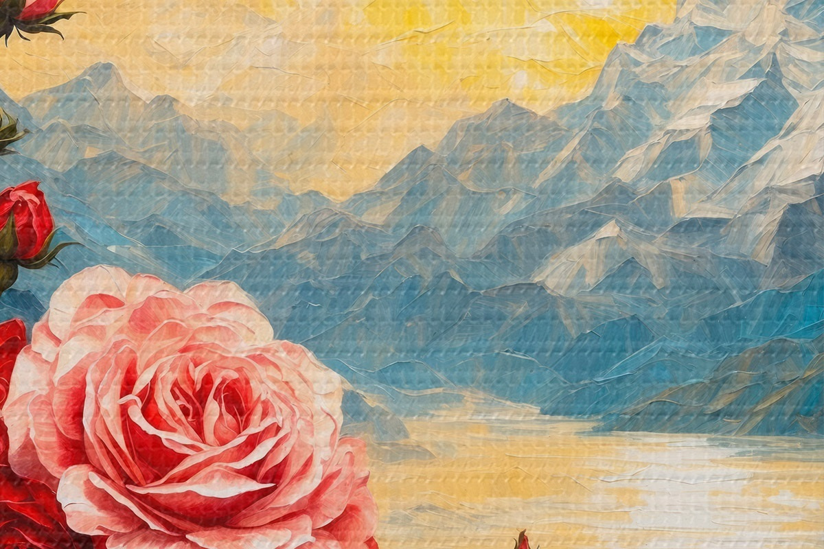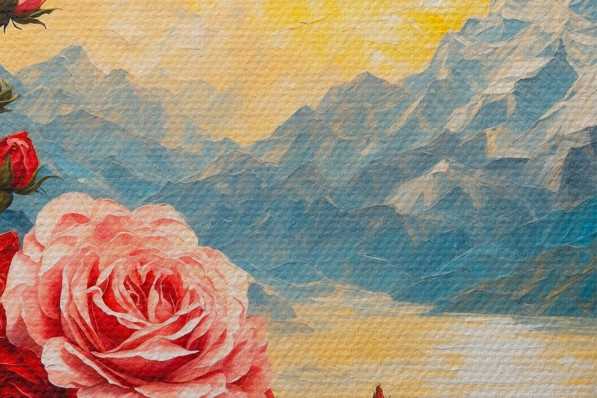 Runde Wandbilder Rosen auf Berge Hintergrund in Ölgemälde Stil r43457