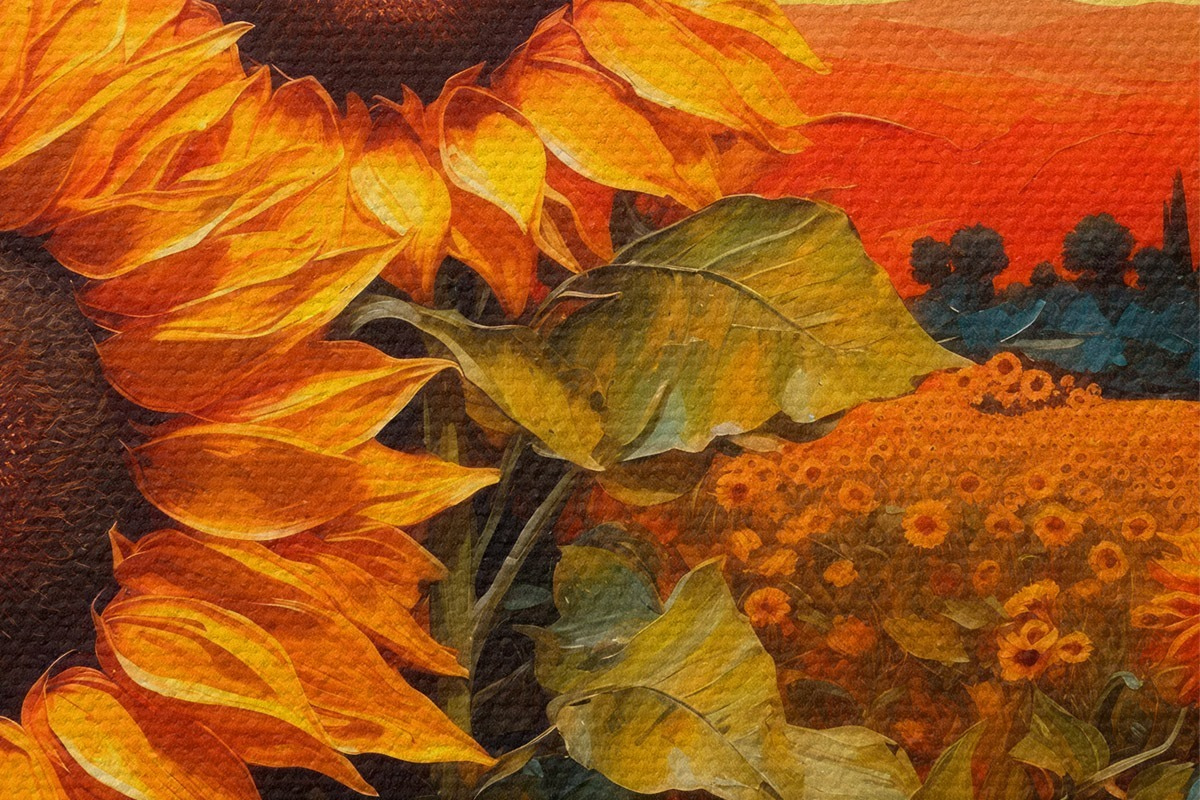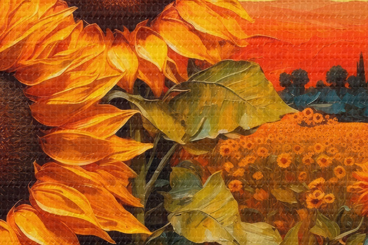 Runde Wandbilder Sonnenblumenfeld bei Sonnenuntergang Nr r43460