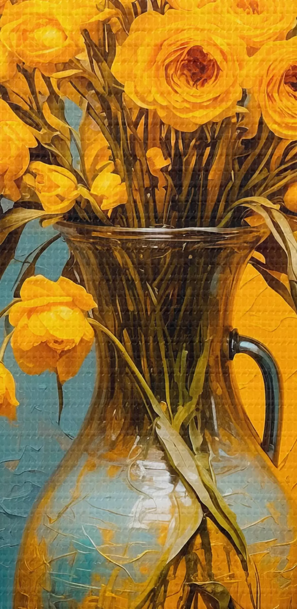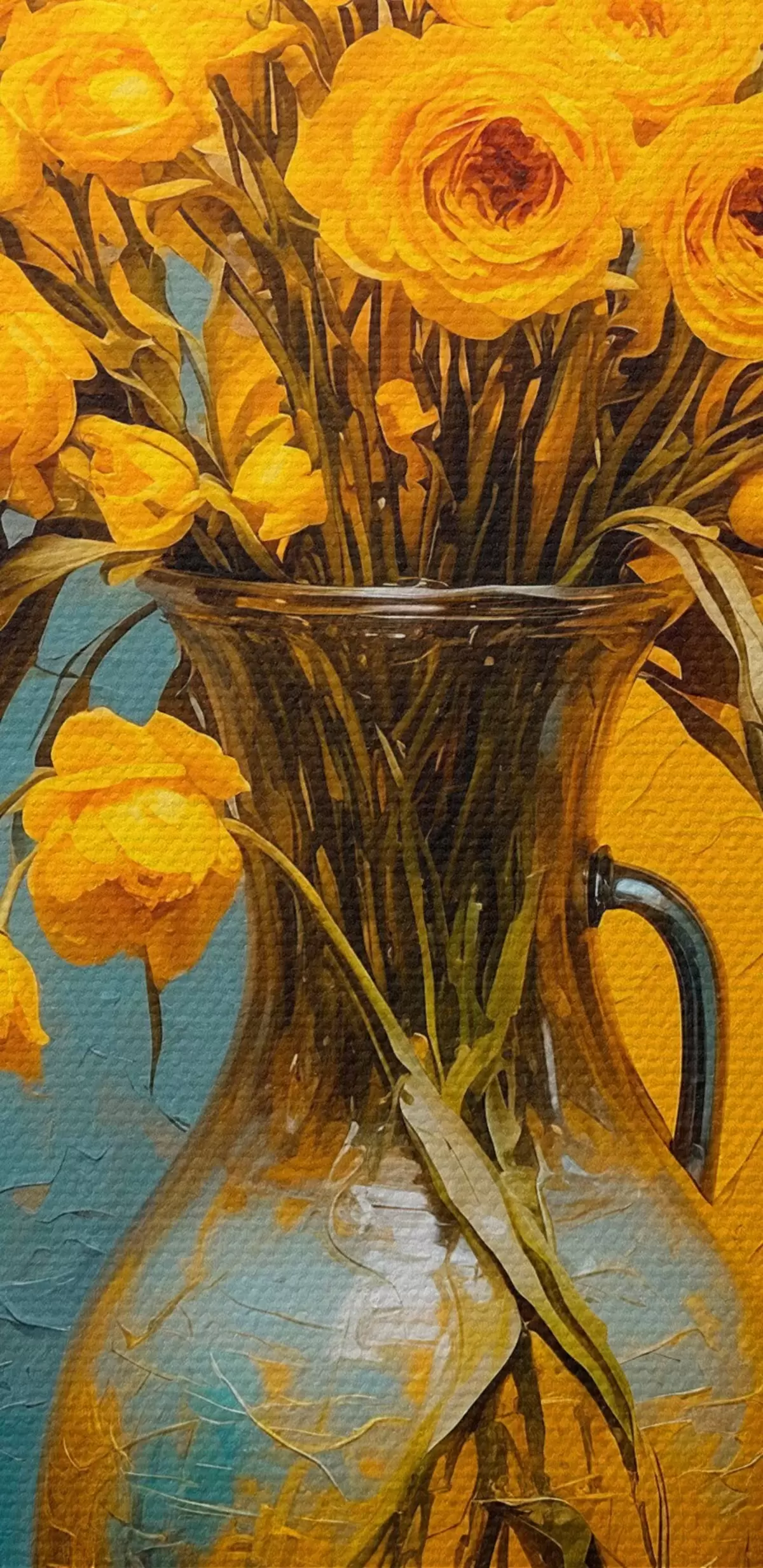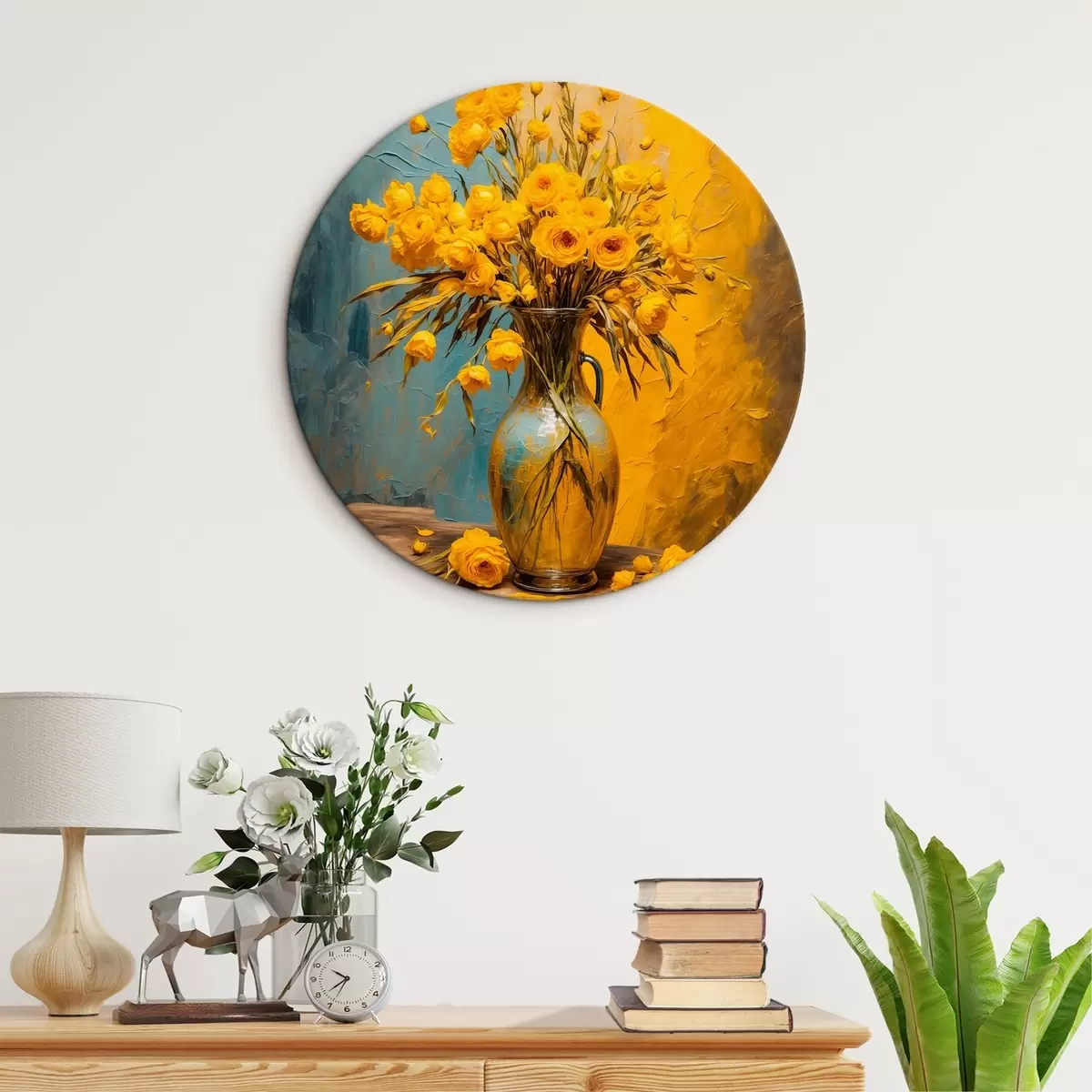 Runde Wandbilder Gelbe Blumen in einer Vase auf einem Tisch Nr r43462