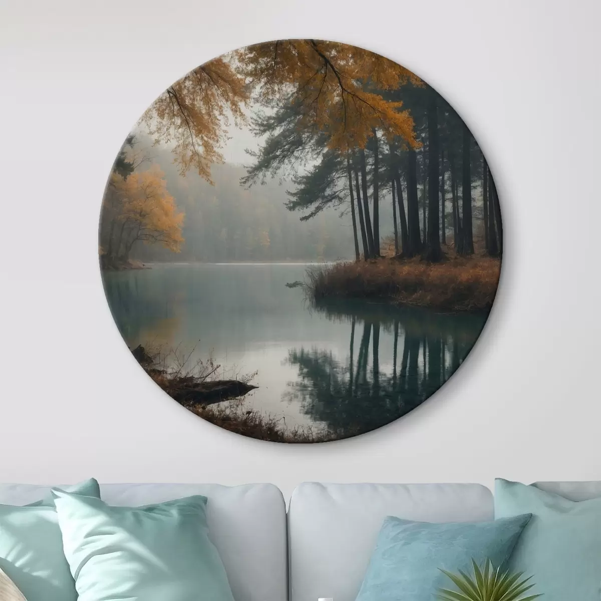 Runde Wandbilder See im Herbstwald Nr r43463