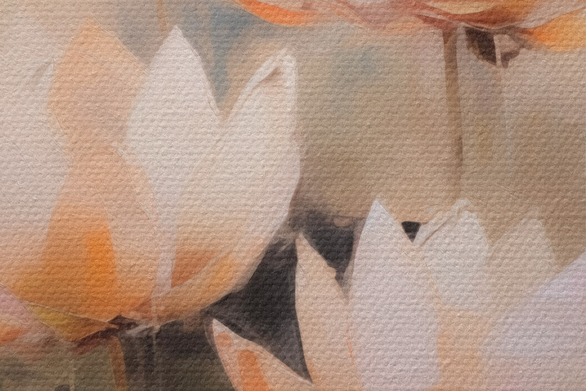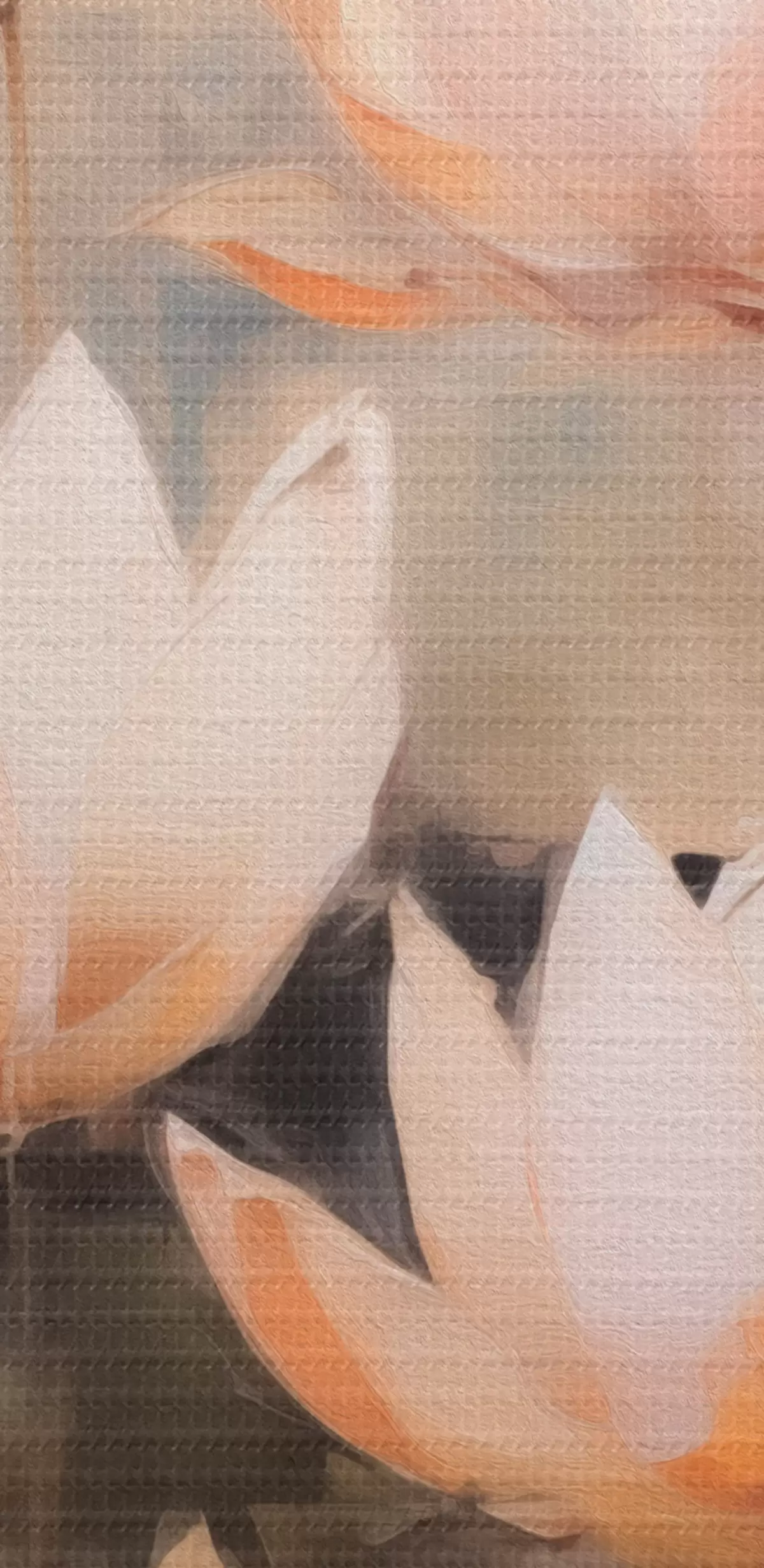 Drei Materialtypen stehen zur Verfügung: Economic Canvas - ein dichtes und haltbares Material für den Digitaldruck, identisch mit Malerleinwand, wasserfeste Oberfläche, realistische Wiedergabe von Details, mittelkörniges Material. Premium Canvas - die Textur ähnelt der einer Malerleinwand (verwobene kleine Fäden). Weiche, detaillierte Wiedergabe des Bildes auf einer matten Oberfläche. Eco-Premium - hochwertiges Gewebe aus 100% Baumwolle. Dank der natürlichen Baumwollfasern ist das Material langlebig und verschleißfest. Hervorragende Farbwiedergabe und Detailtreue.