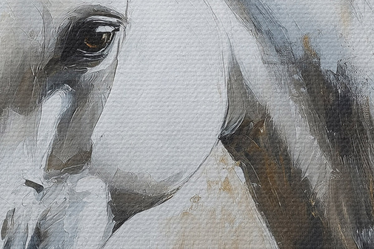 Runde Wandbilder Weißes Pferd, Öl-Stil-Zeichnung, Tiere, lebhafte Pinselstriche r43497