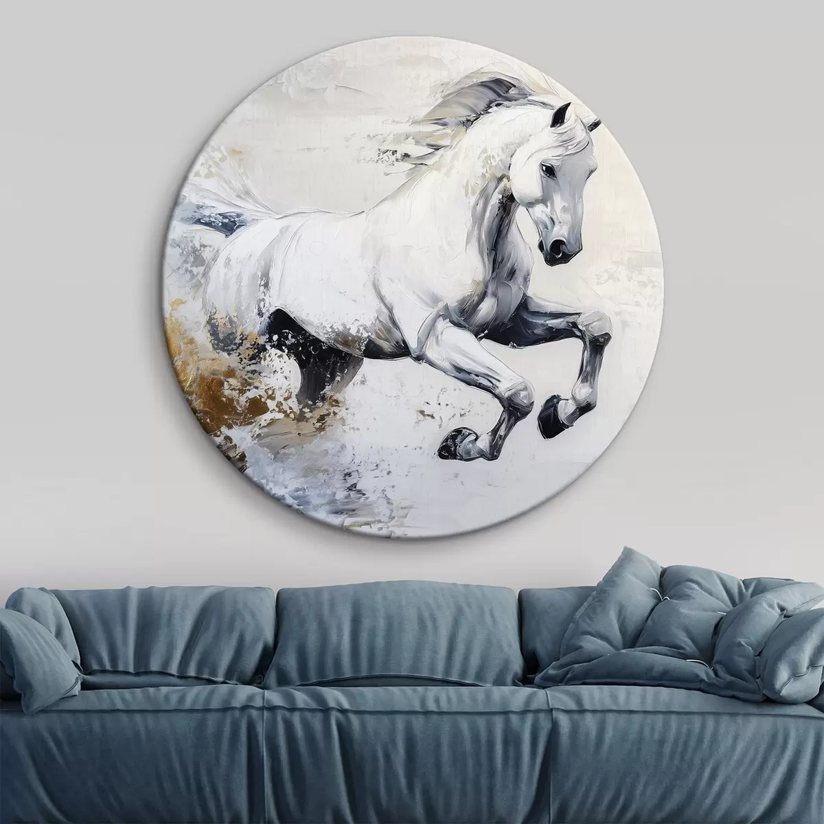 Runde Wandbilder Laufendes weißes Pferd, Öl-Stilzeichnung, Tiere r43498