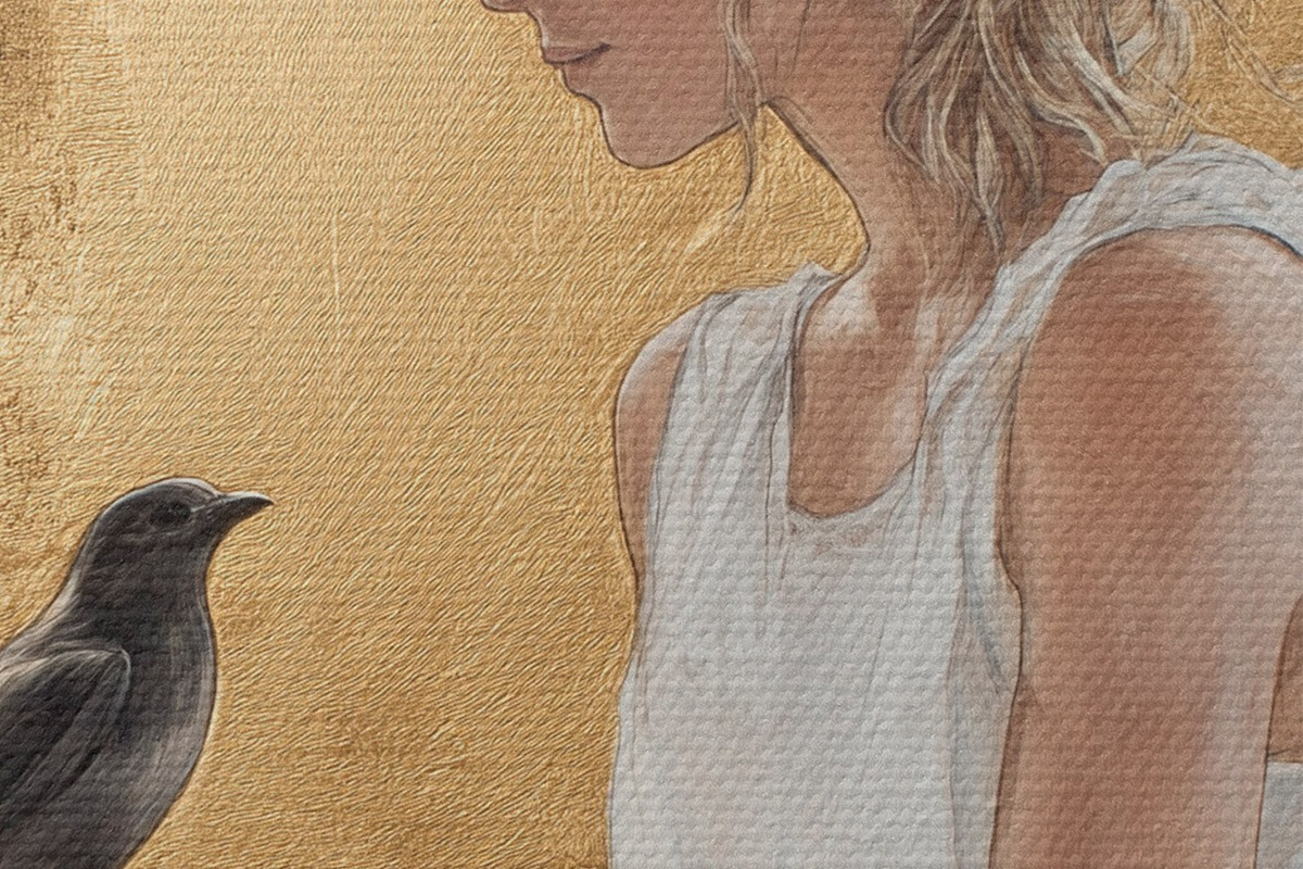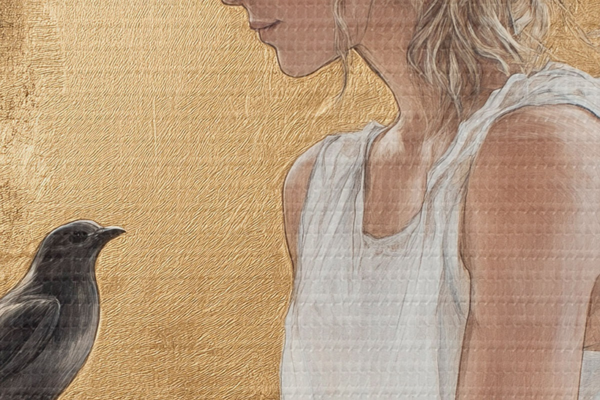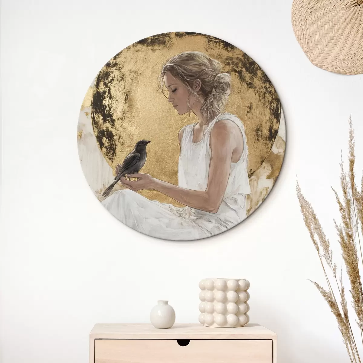 Runde Wandbilder Schöne Frau mit Vogel, Griechenland, Acryl-Stil Zeichnung r43503