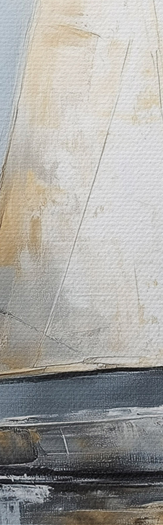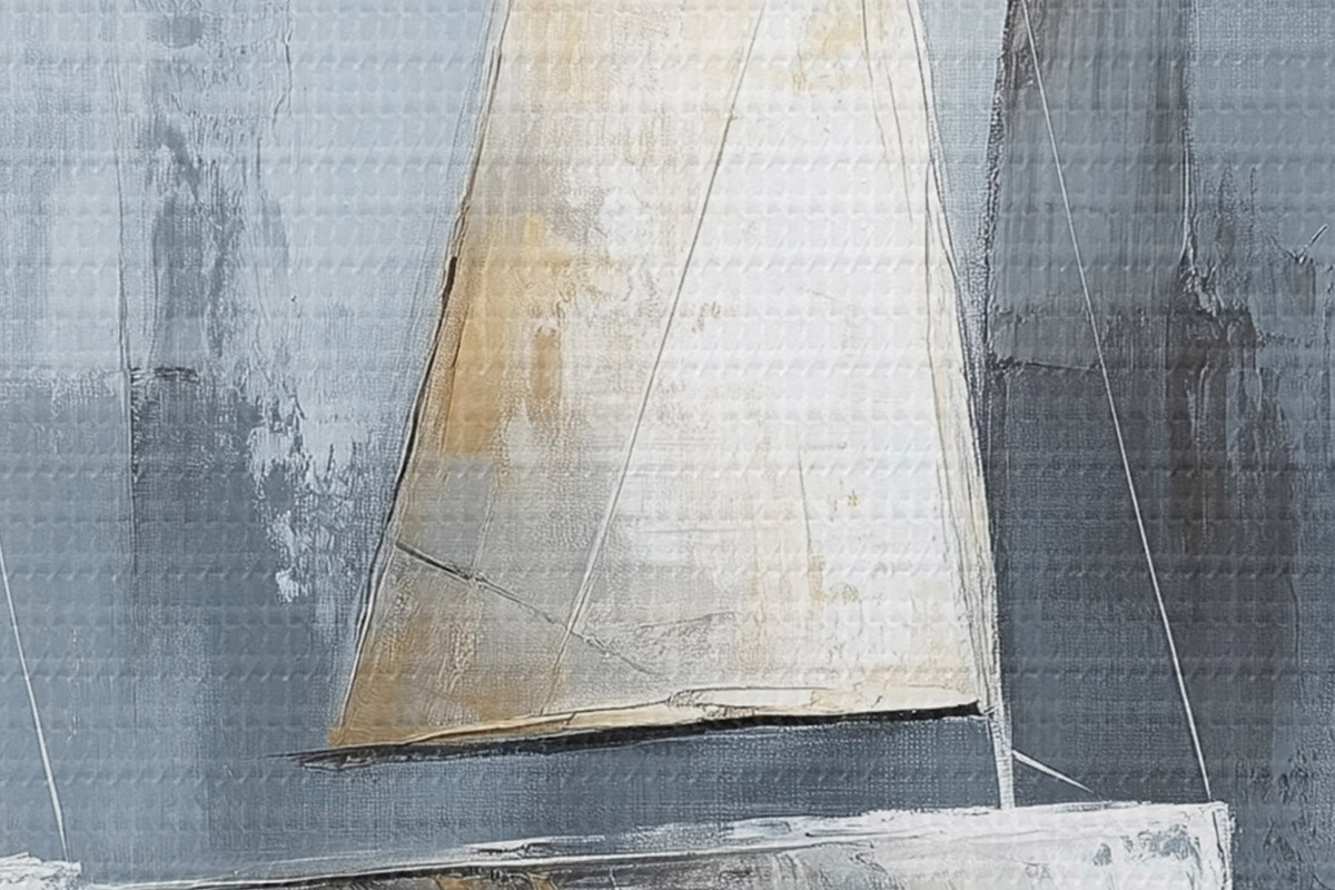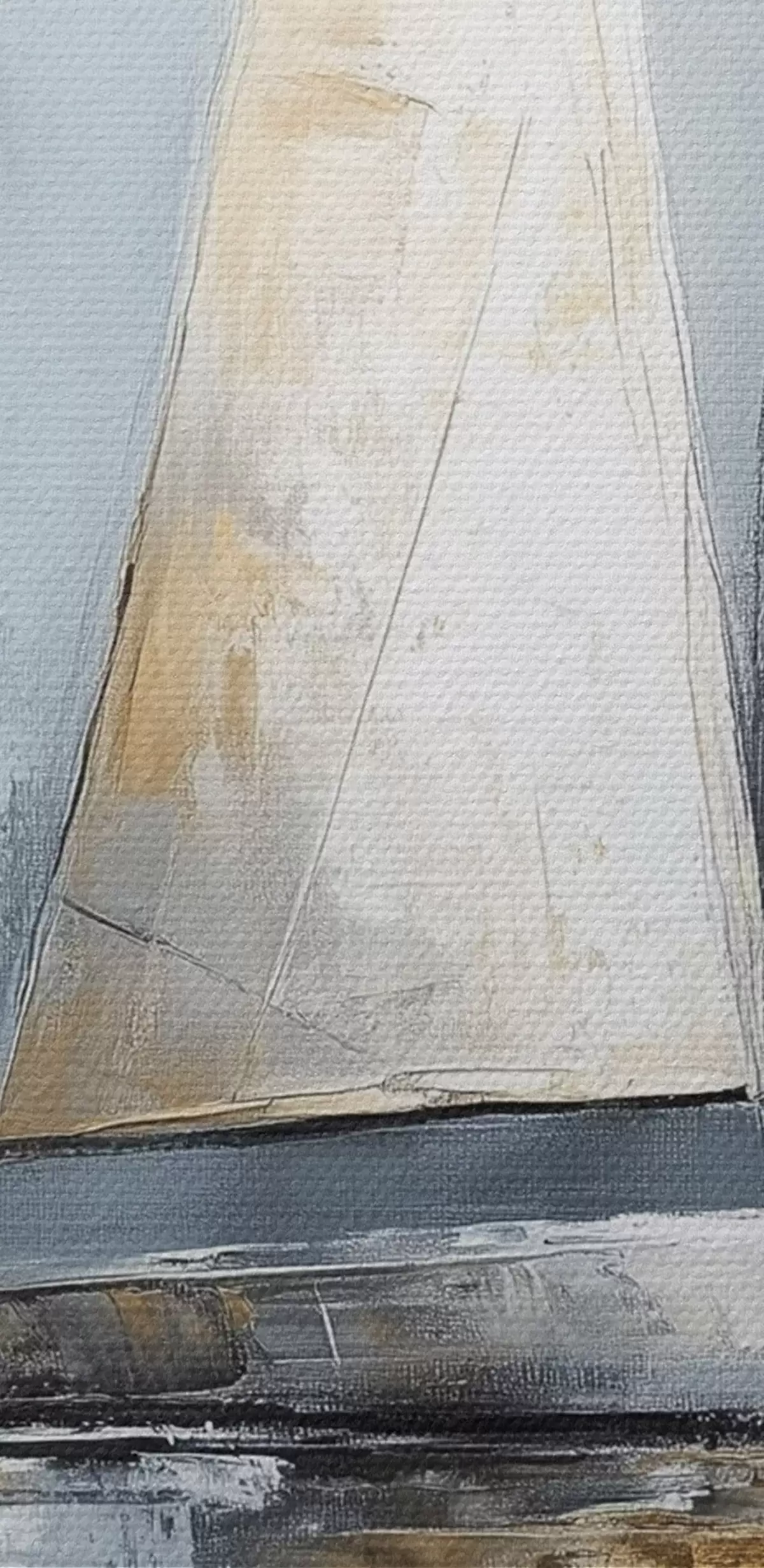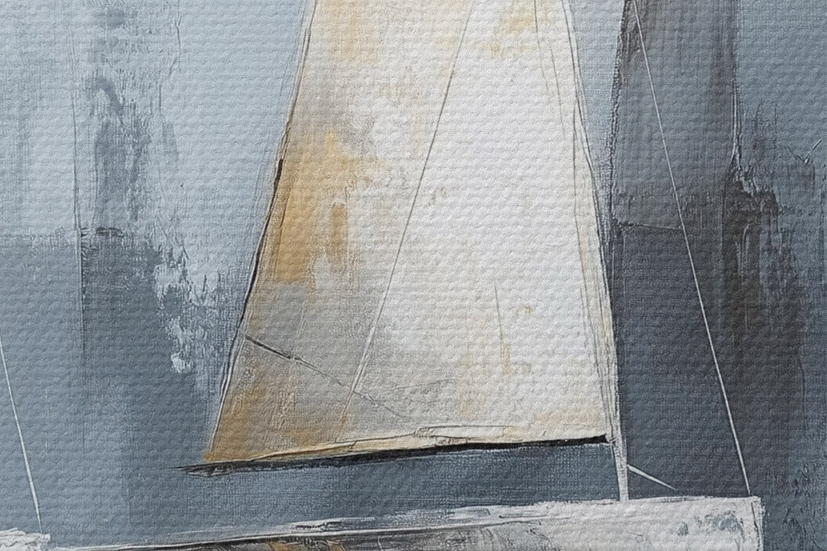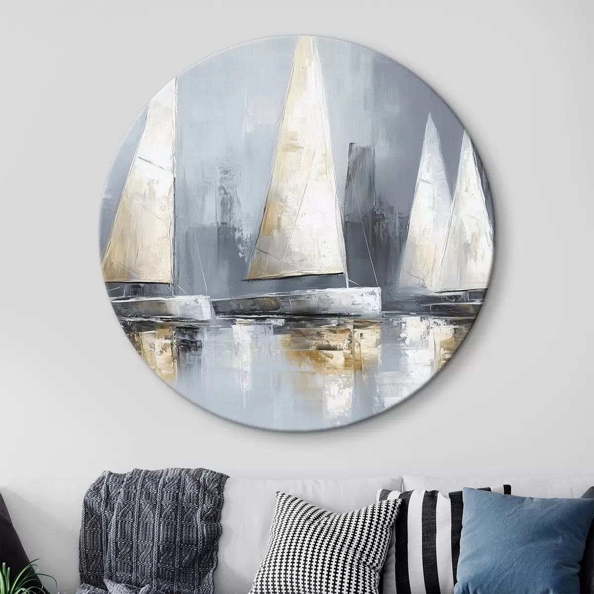 Runde Wandbilder Segelboote mit Spiegelungen im Wasser, Ölzeichnung, graue Farben r43506