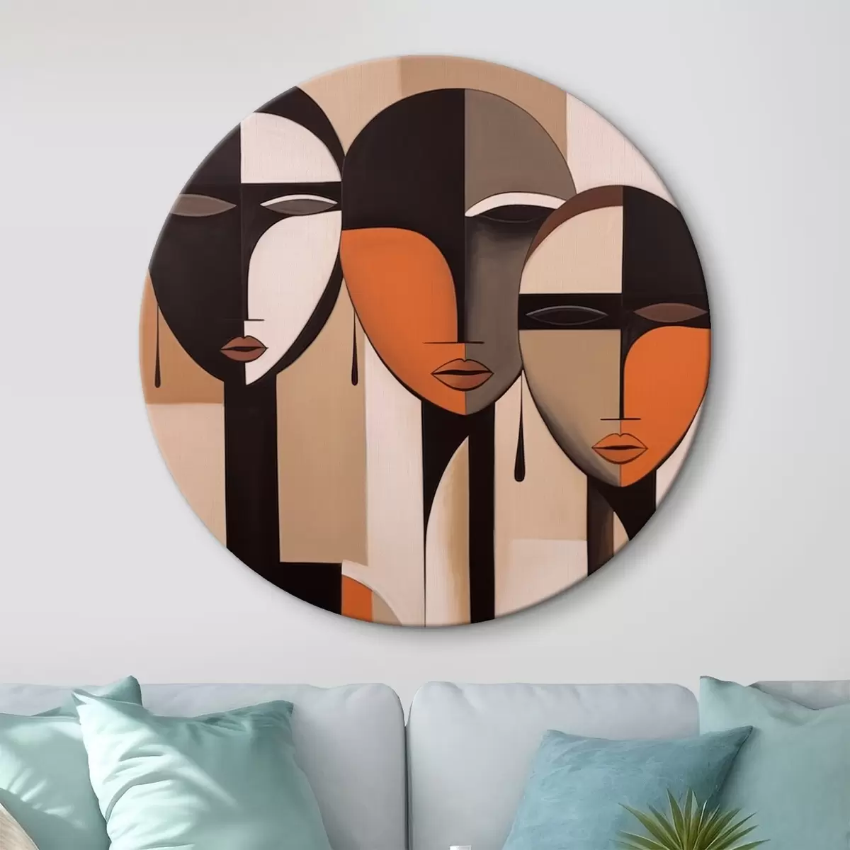 Runde Wandbilder Abstrakte Gesichter in harmonischen Farben r43525