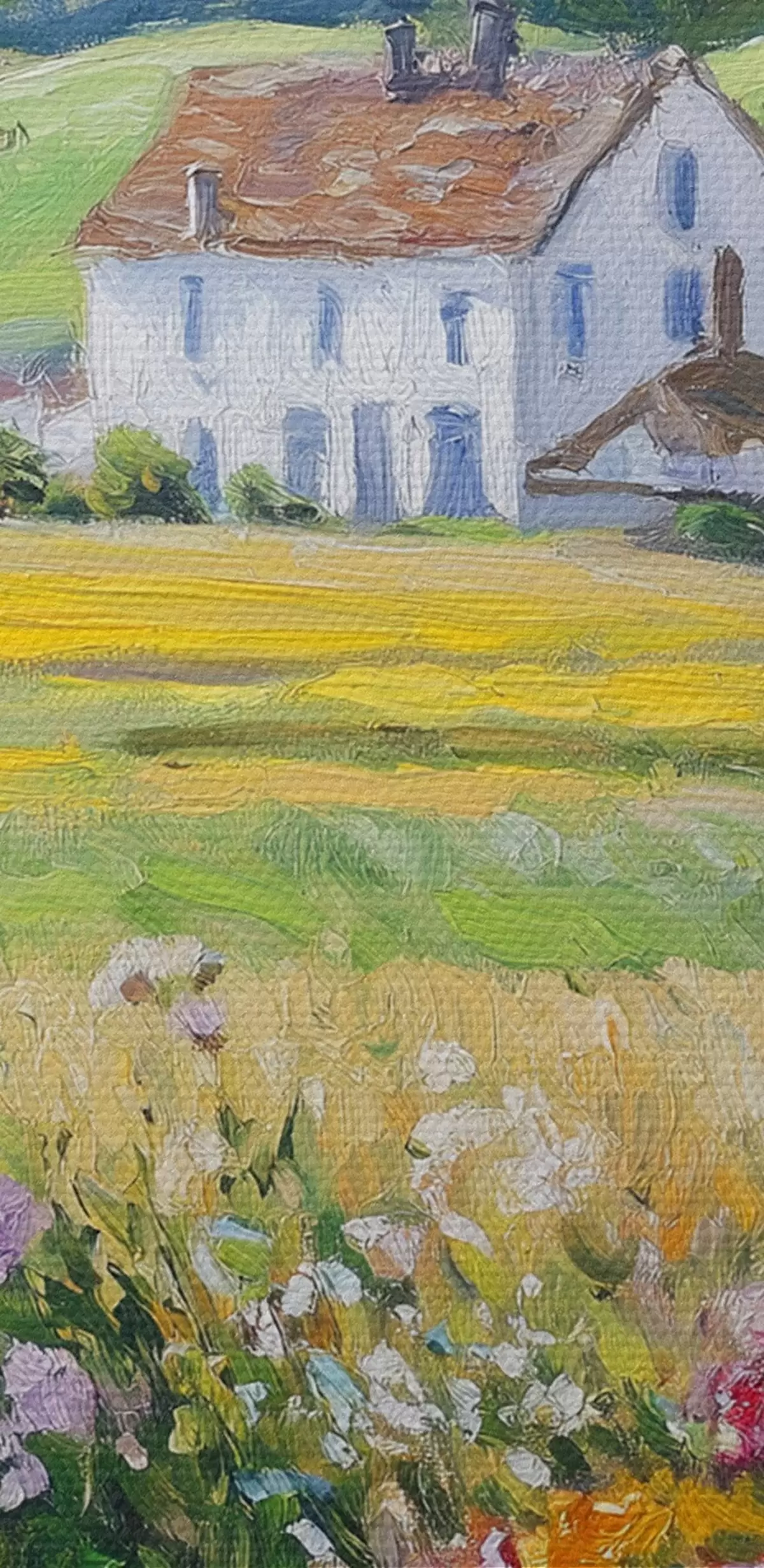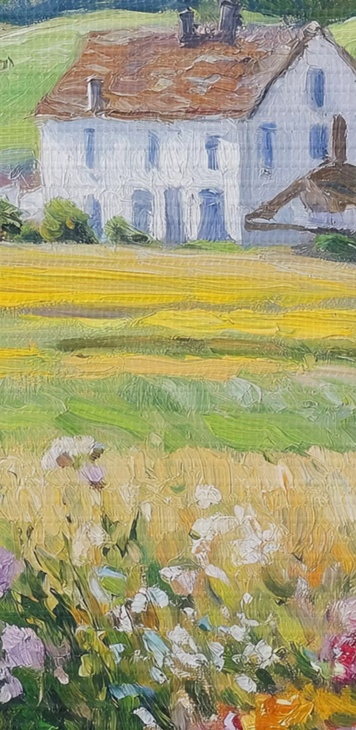 Runde Wandbilder Dorflandschaften im Holzfenster, Blumen, Felder, Öl-Stil, Bauernhaus r43888