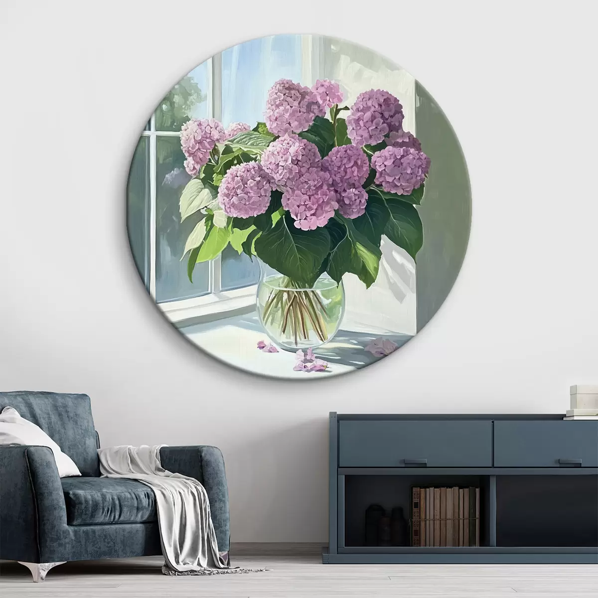 Runde Wandbilder Violetter Blumenstrauß am Fenster Nr r43906