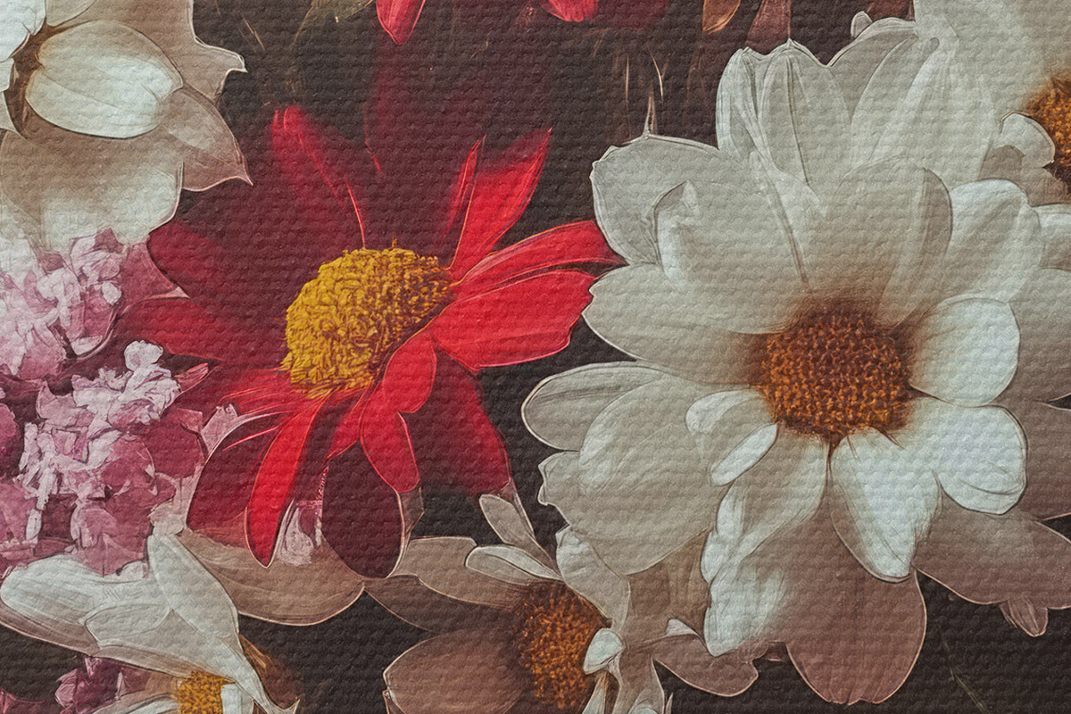 Drei Materialtypen stehen zur Verfügung: Economic Canvas - ein dichtes und haltbares Material für den Digitaldruck, identisch mit Malerleinwand, wasserfeste Oberfläche, realistische Wiedergabe von Details, mittelkörniges Material. Premium Canvas - die Textur ähnelt der einer Malerleinwand (verwobene kleine Fäden). Weiche, detaillierte Wiedergabe des Bildes auf einer matten Oberfläche. Eco-Premium - hochwertiges Gewebe aus 100% Baumwolle. Dank der natürlichen Baumwollfasern ist das Material langlebig und verschleißfest. Hervorragende Farbwiedergabe und Detailtreue.