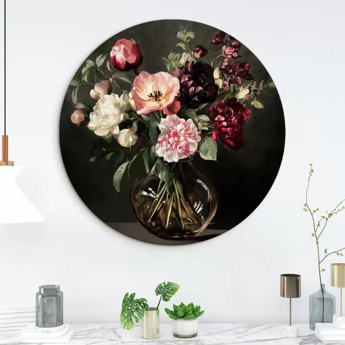 Runde Wandbilder Blumenstrauß auf dunklem Hintergrund r43912