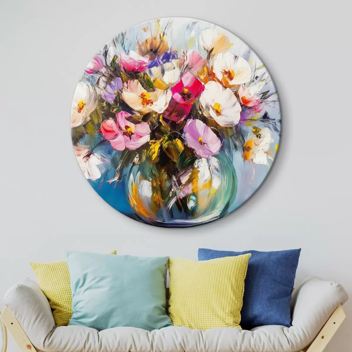 Runde Wandbilder Zarter Blumenstrauß in Ölfarbenstil r43913