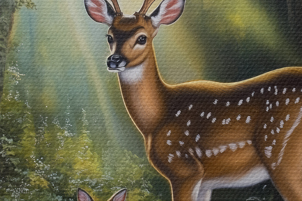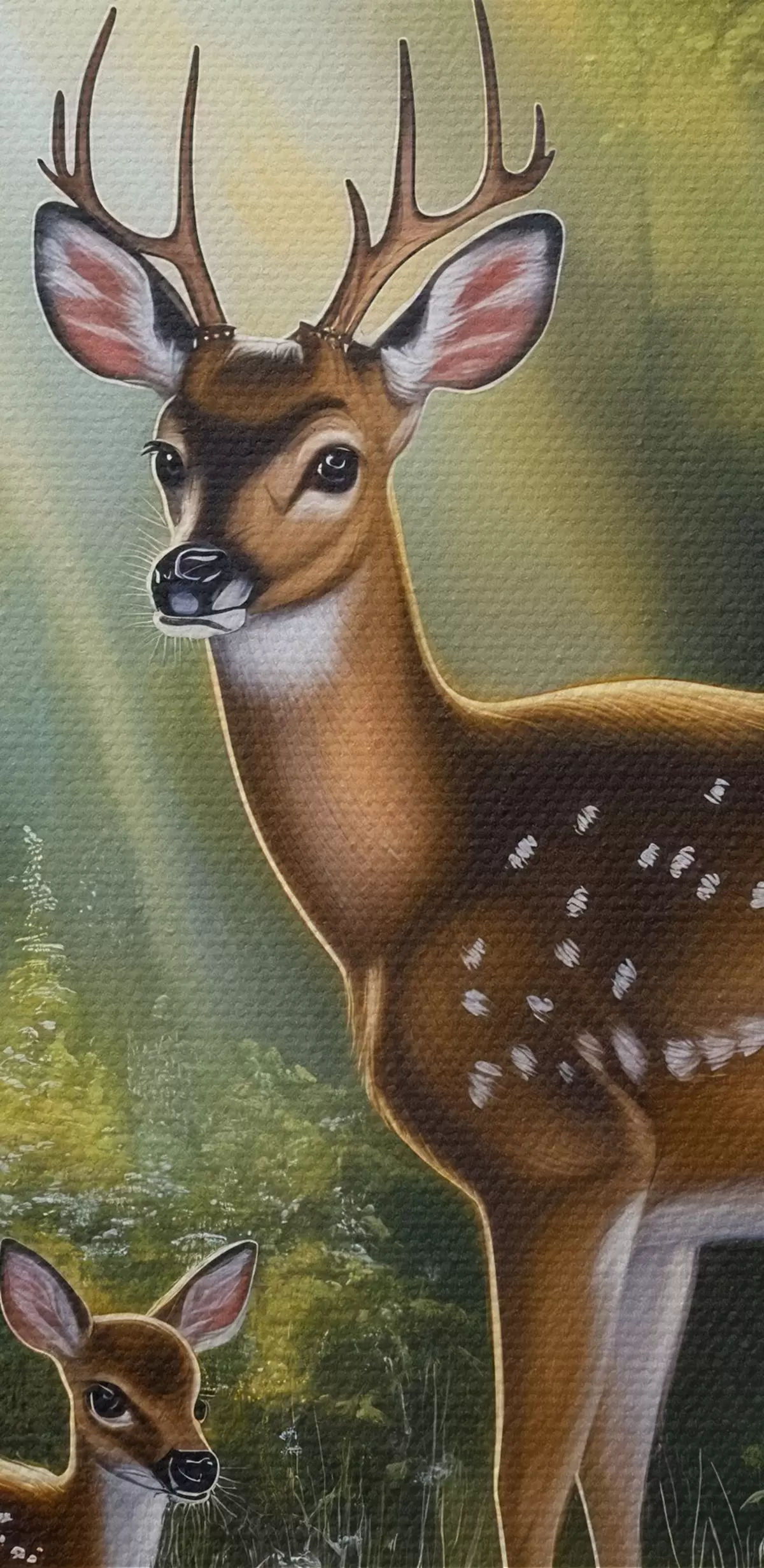 Runde Wandbilder Hirsch und Rehkitz im Wald Nr r43915
