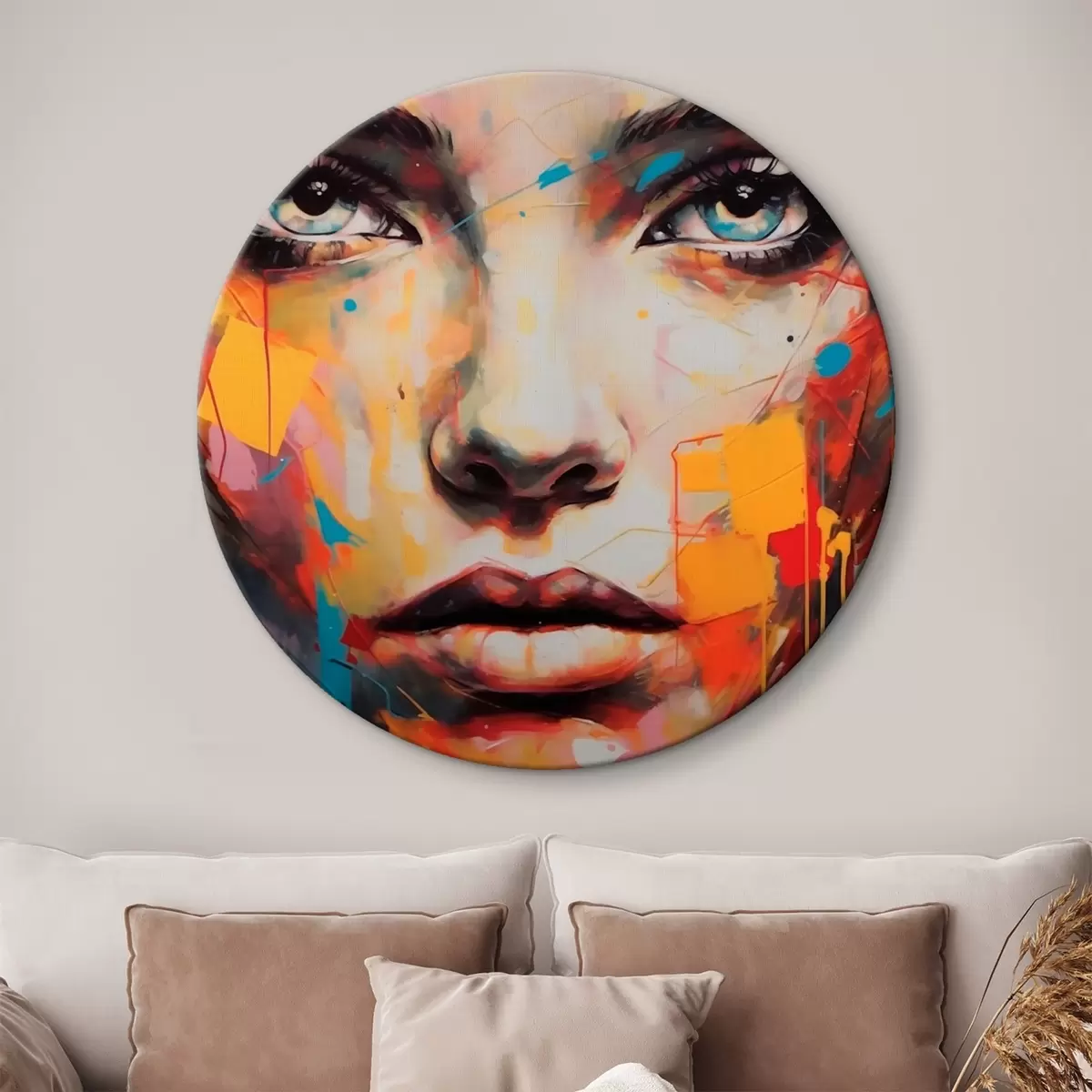 Runde Wandbilder Porträt in farbigen Strichen r43982