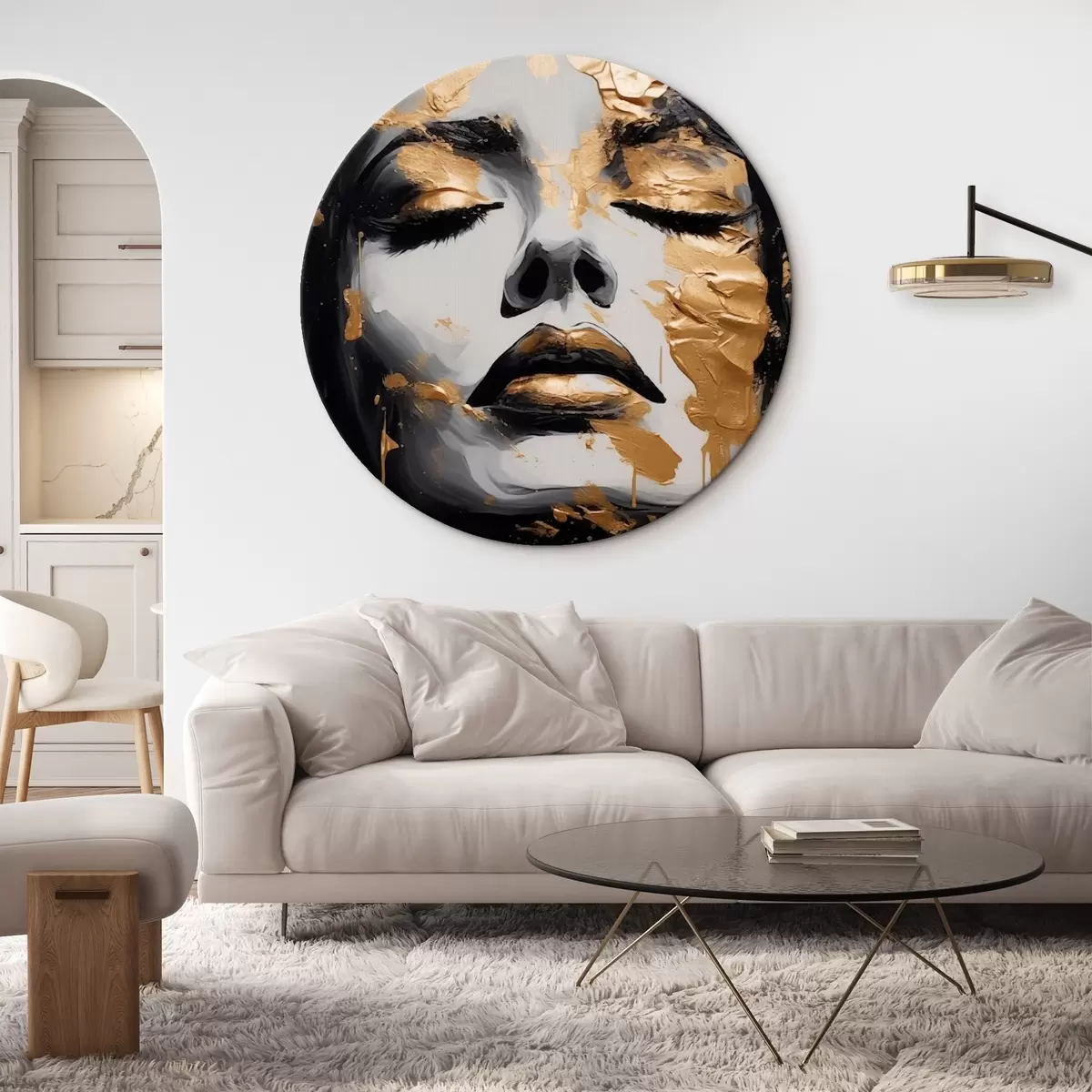 Runde Wandbilder Porträt einer Frau mit abstrakten Strichen r43988