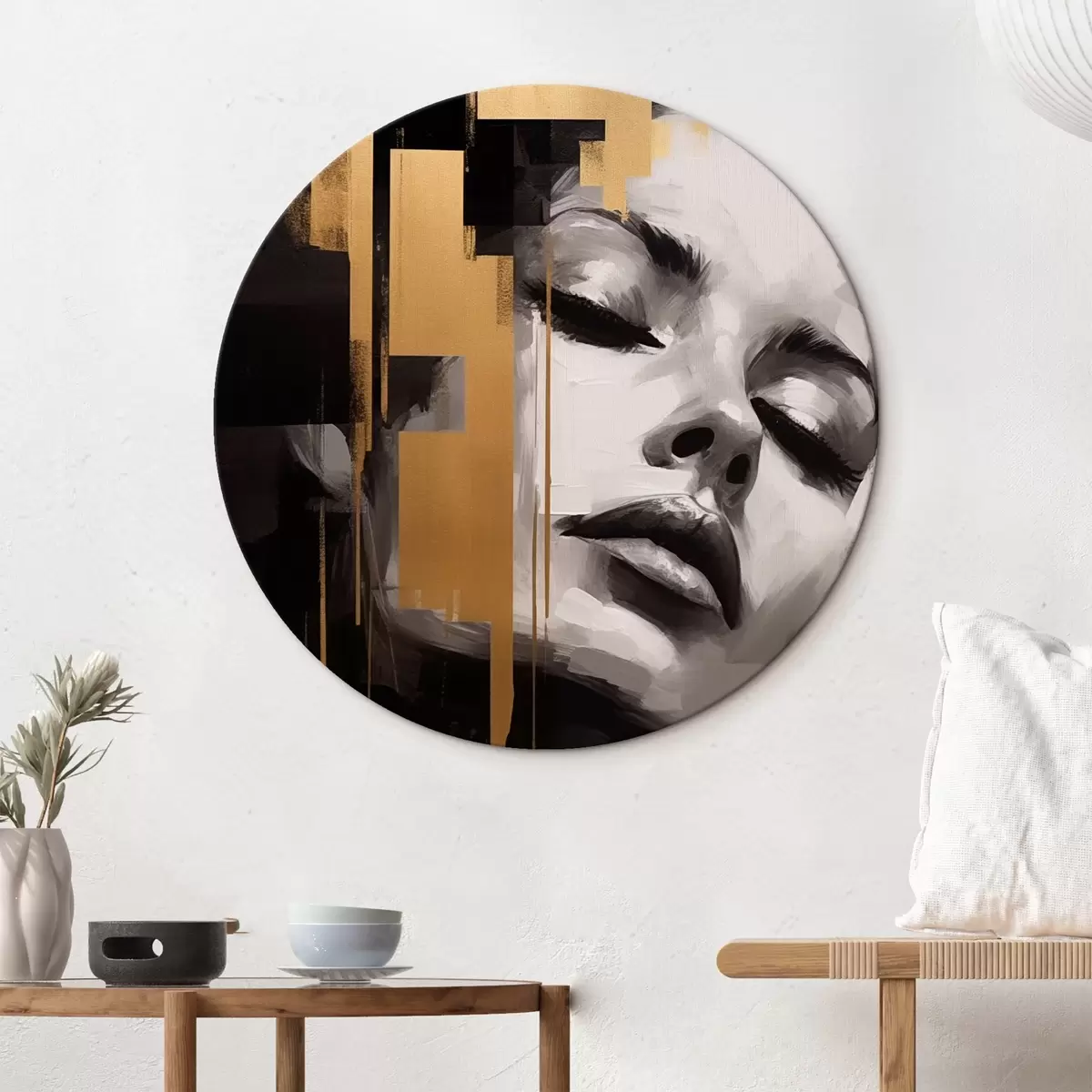Runde Wandbilder Weibliches Porträt mit geometrischen Akzenten r43989