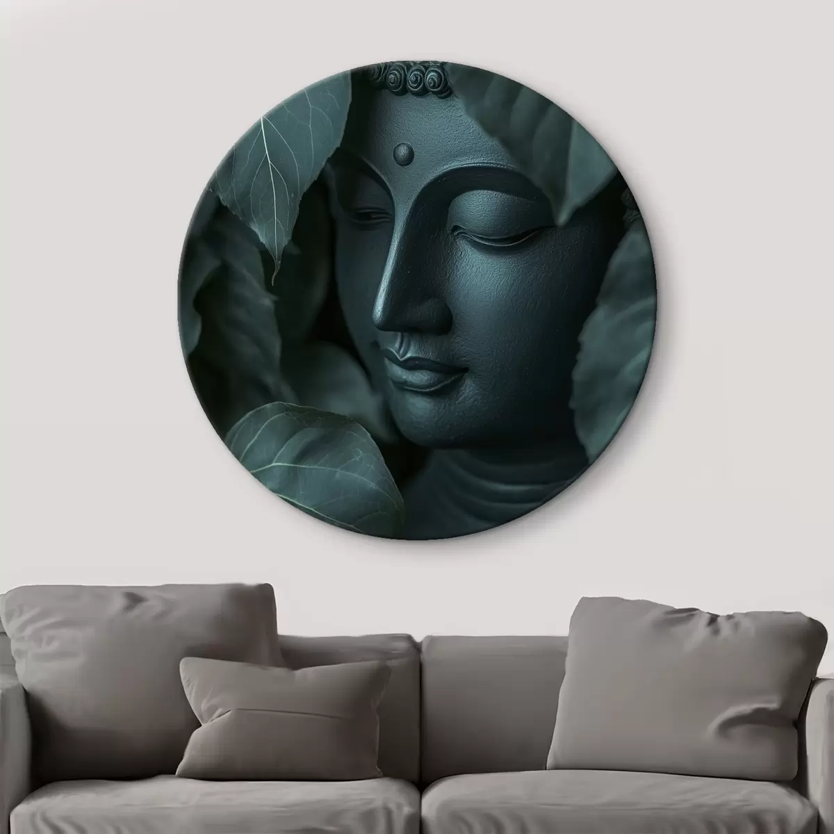 Runde Wandbilder Buddha in den grünen Blättern, Buddhismus, tropisch, Realismus Nr r44004