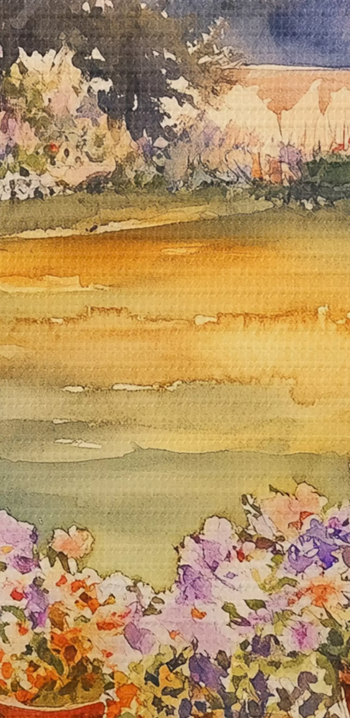 Runde Wandbilder Blumen im Dorfgarten, Sonnenuntergang Farben, Aquarell-Stil Nr r44019