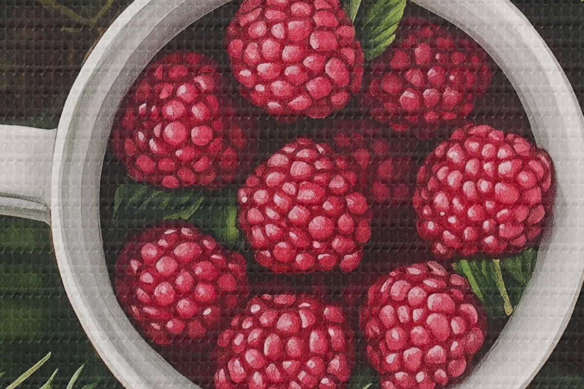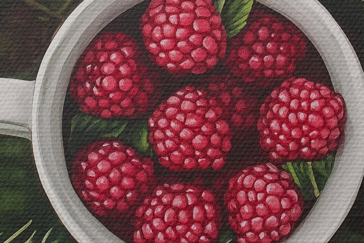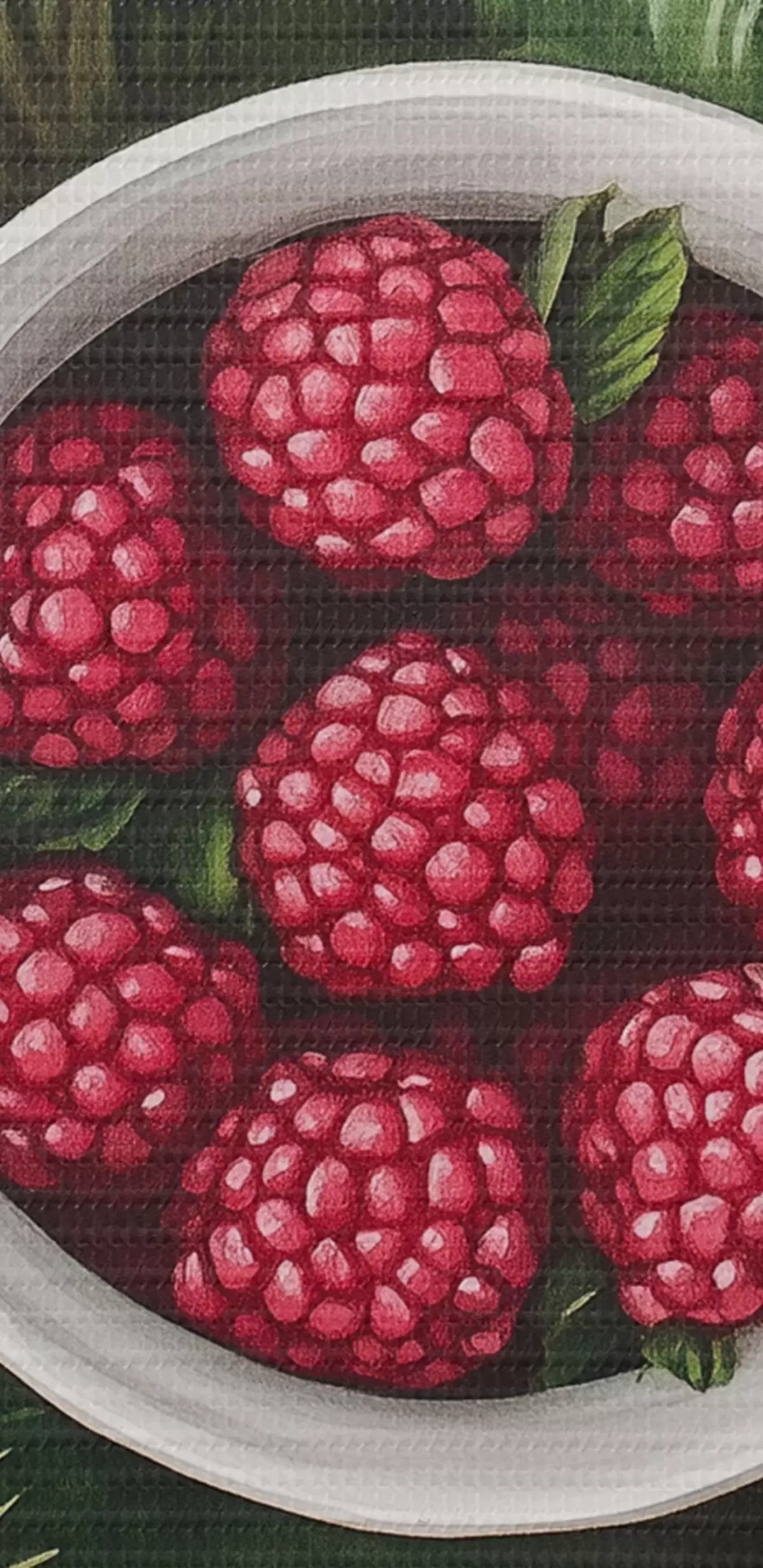 Runde Wandbilder Schale mit Himbeeren im grünen Wald, Natur, Aquarellstil r44021