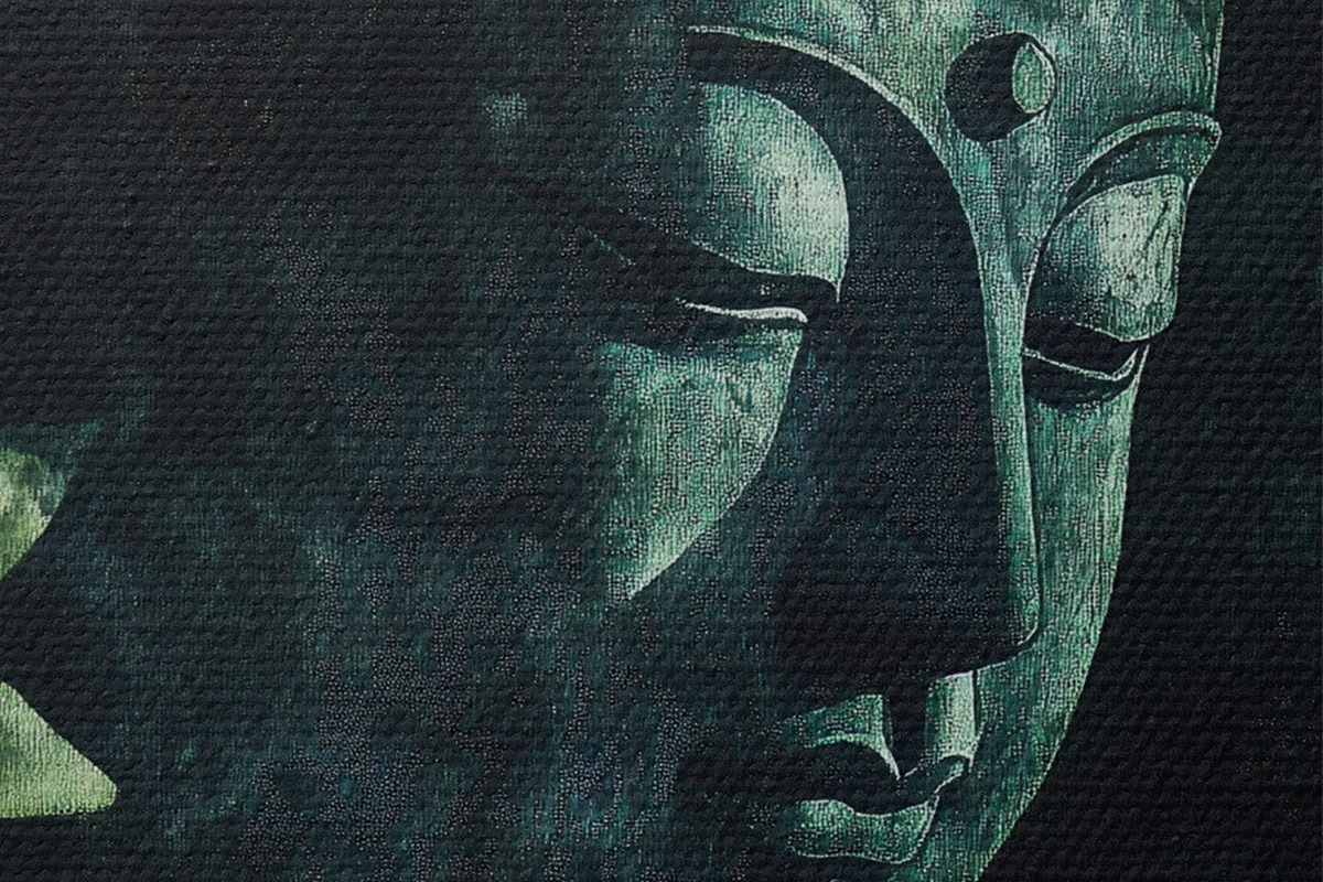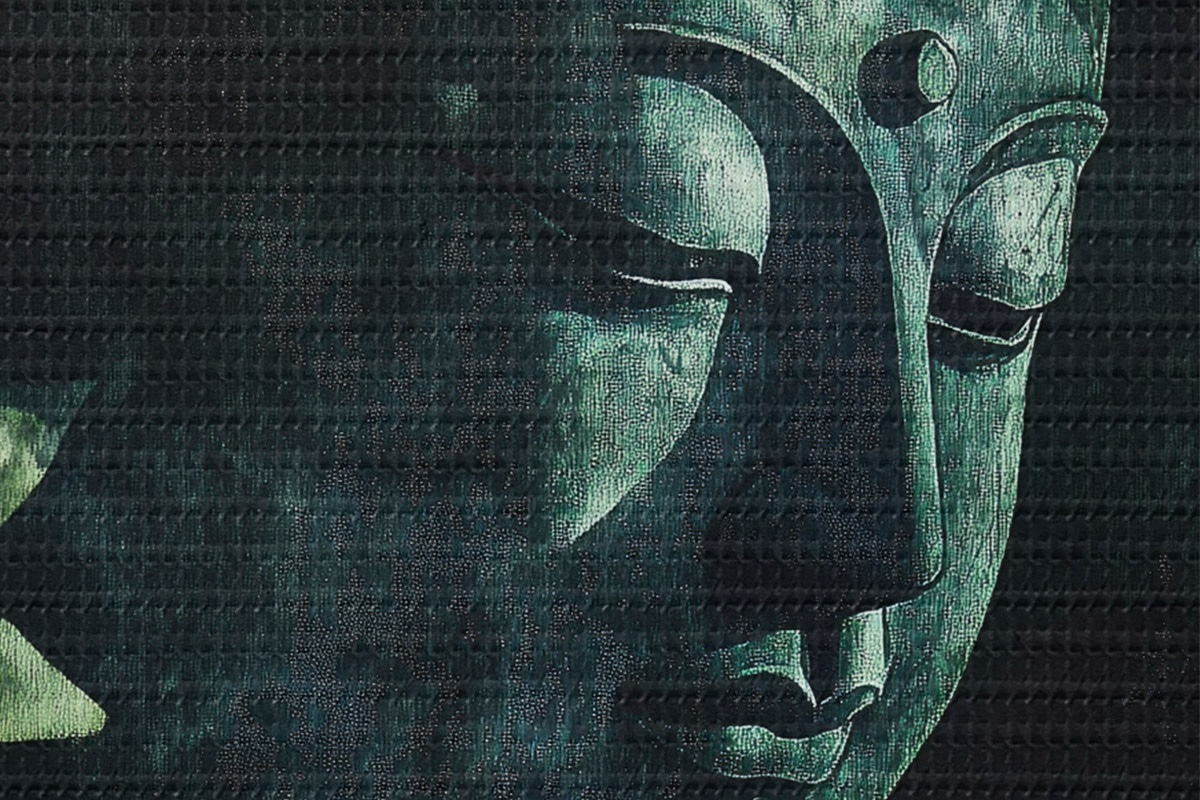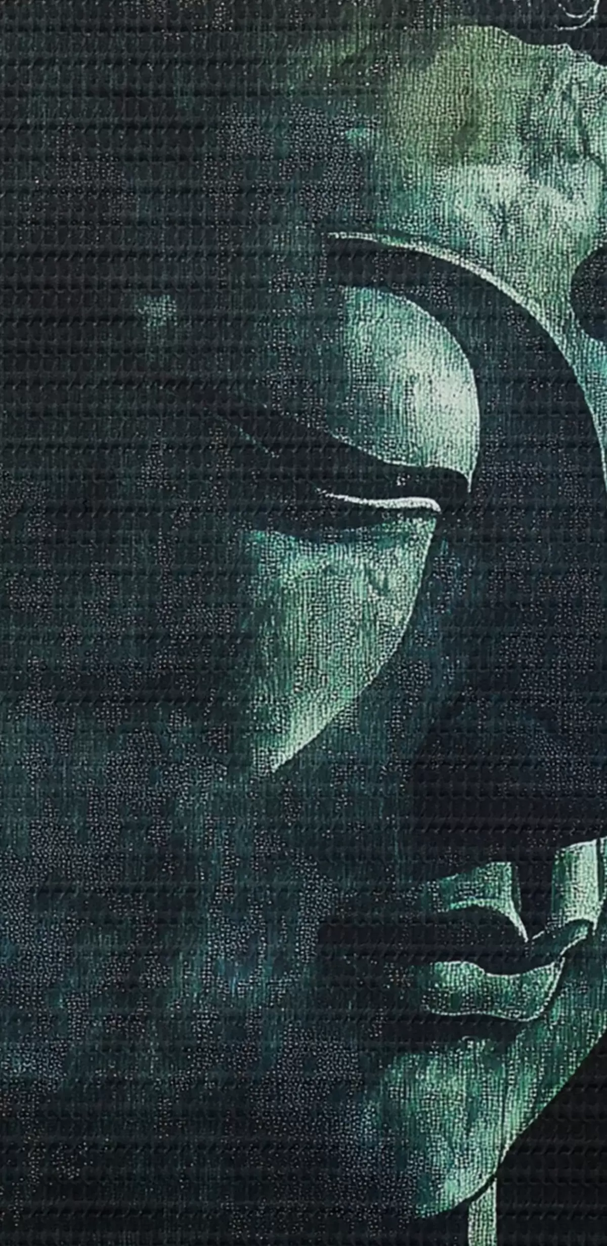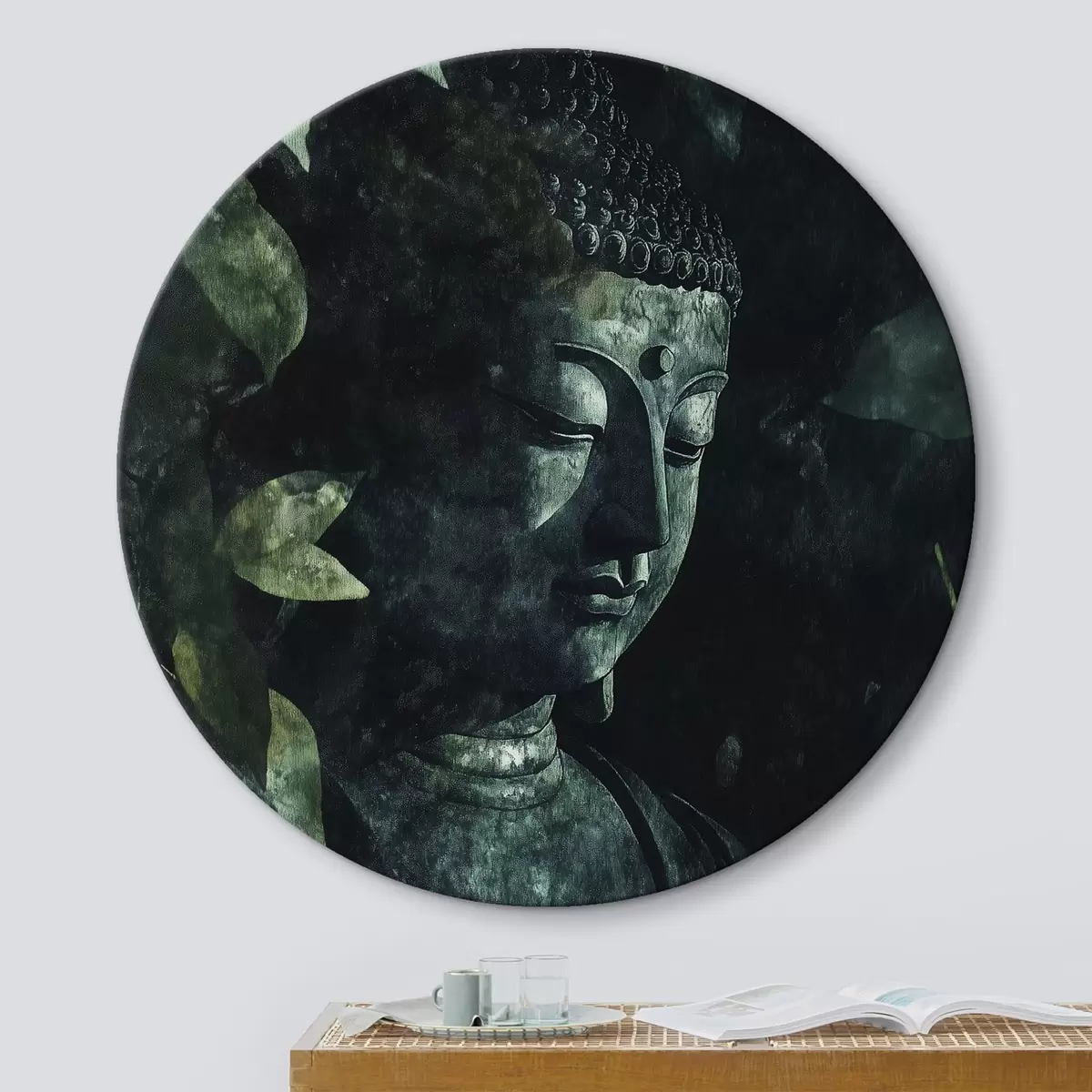 Runde Wandbilder Meditativer Buddha in den grünen Blättern, spirituell Nr r44029