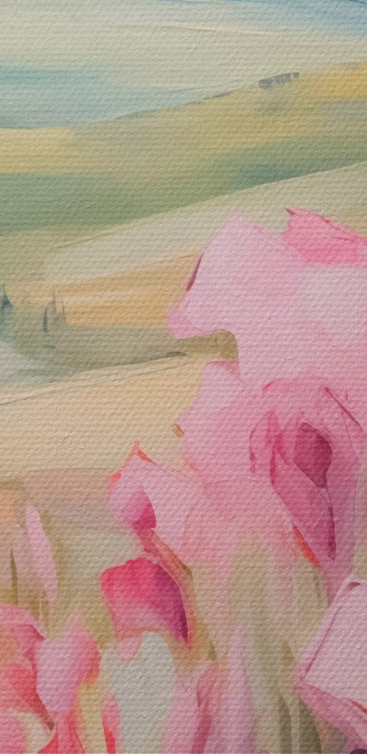 Das feine Fadengeflecht auf dieser Leinwand ähnelt der Oberfläche von professionellen Künstlerleinwänden.