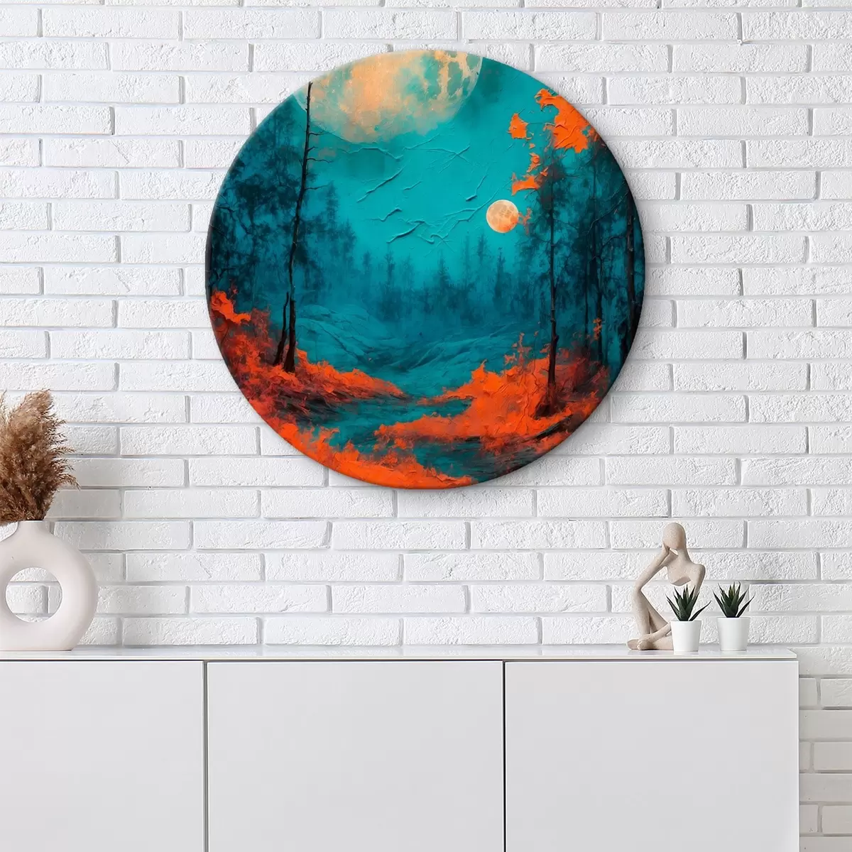 Runde Wandbilder Schwarzer Wald in schwarzem Mond in Ölgemälde Stil r44063